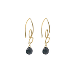 I love these open leaf hoop earrings (as well as the larger version!). These handmade gold open leaf hoop earrings feature faceted gemstones dangling from small 14k Gold Vermeil double leaf hoop earrings. Model wears the silver version of the earrings.