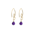 These open leaf hoop earrings are 14k Gold Vermeil over sterling silver, with semi-precious gemstones. Gold vermeil jewelry is considered more valuable than gold-plated because of the thickness of gold and its sterling silver base (as opposed to copper and brass base metals, typical of gold-plated jewelry).