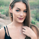 I love this delicate, feminine necklace. It’s so lightweight and comfortable to wear. The color of the gemstone is beautiful and matches almost everything. I also purchased the matching earrings. The set is just perfect!