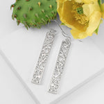Silver Long Cactus Bar Earrings