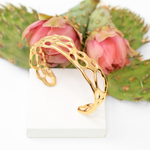 Wrap your wrist in natural beauty with the Slender Gold Cactus Cuff Bracelet. The graceful, organic design is inspired by the desert and made from dried prickly pear cactus skeleton. Made with solid 14k gold, this cuff bracelet is a distinctive reminder of the beauty and resilience of the desert Southwest.