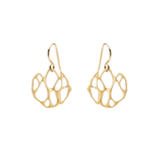 These gold cactus earrings are made using actual Prickly Pear cactus skeletons (skeleton closeup shown). Using the lost wax casting process, each piece is a solid metal replica of a section of cactus skeleton.