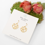 These small organic circle cactus earrings capture the warmth and elegance of the desert in 14k gold. Handcrafted from the delicate skeleton of the prickly pear cactus, each piece features soft, freeform edges that reflect the natural texture of the cactus fiber. Lightweight with a golden glow, they add a refined yet earthy touch to your everyday style.