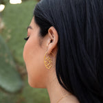 The Desert Sunrise Gold Cactus Hoop Earrings are inspired by the Southwest desert and bear the pattern of the prickly pear cactus fiber. These botanical hoop earrings are especially unique - the elongated earwire easily slides into your ear, and the earrings hang like a hoop earring without the closure. These handmade solid 14k gold hoop earrings are a distinctive way to wear your love of the desert.