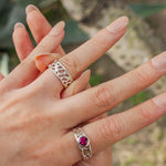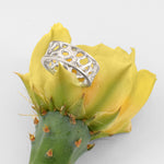 This unique medium band ring features the continuous pattern of the prickly pear cactus fiber. This botanical silver band ring is a lightweight yet durable piece that connects you to the Southwest's spirit.