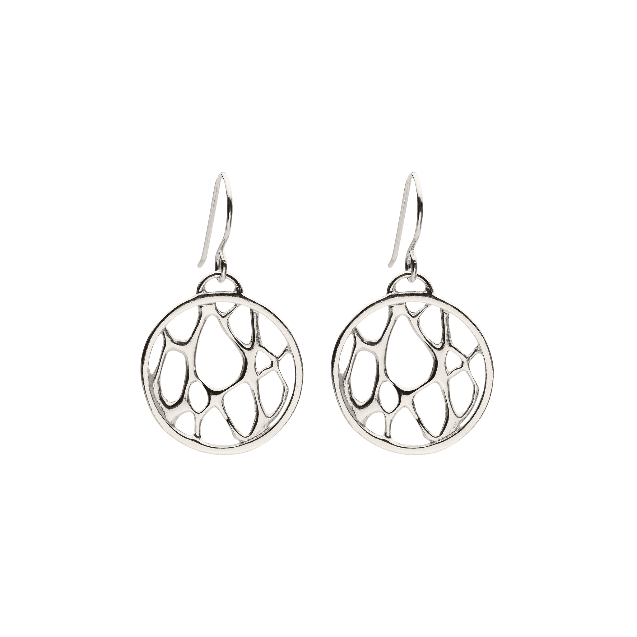 These handmade framed circle cactus skeleton earrings are made from actual skeletons of Prickly Pear cactus (skeleton closeup shown). Using the lost wax casting process, each piece starts with a carefully selected section of Prickly Pear skeleton.