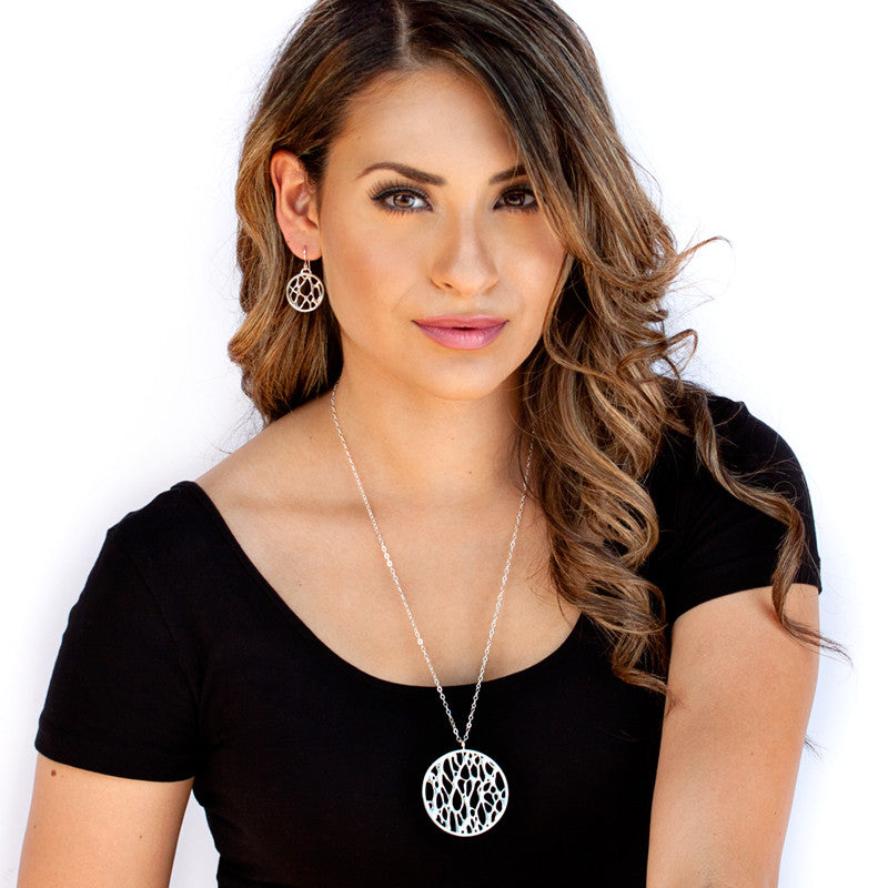 Jewelry handmade from prickly pear cactus fiber. Each piece is made using a solid metal copy of dried cactus fiber.