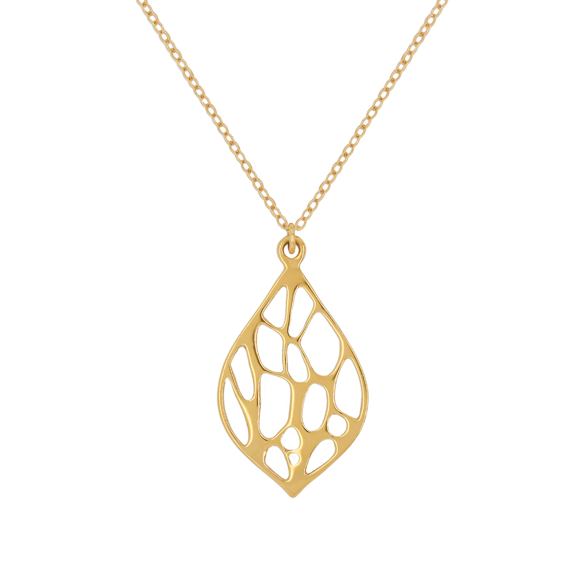 This Medium Pointed Teardrop Gold Cactus Necklace evokes the beauty of the desert with a modern design, making it a perfect piece of cactus jewelry. An exact replica of the prickly pear cactus fiber is framed by a pointed teardrop shape. Crafted in solid 14k gold, it’s a timeless way to celebrate your connection to the desert.