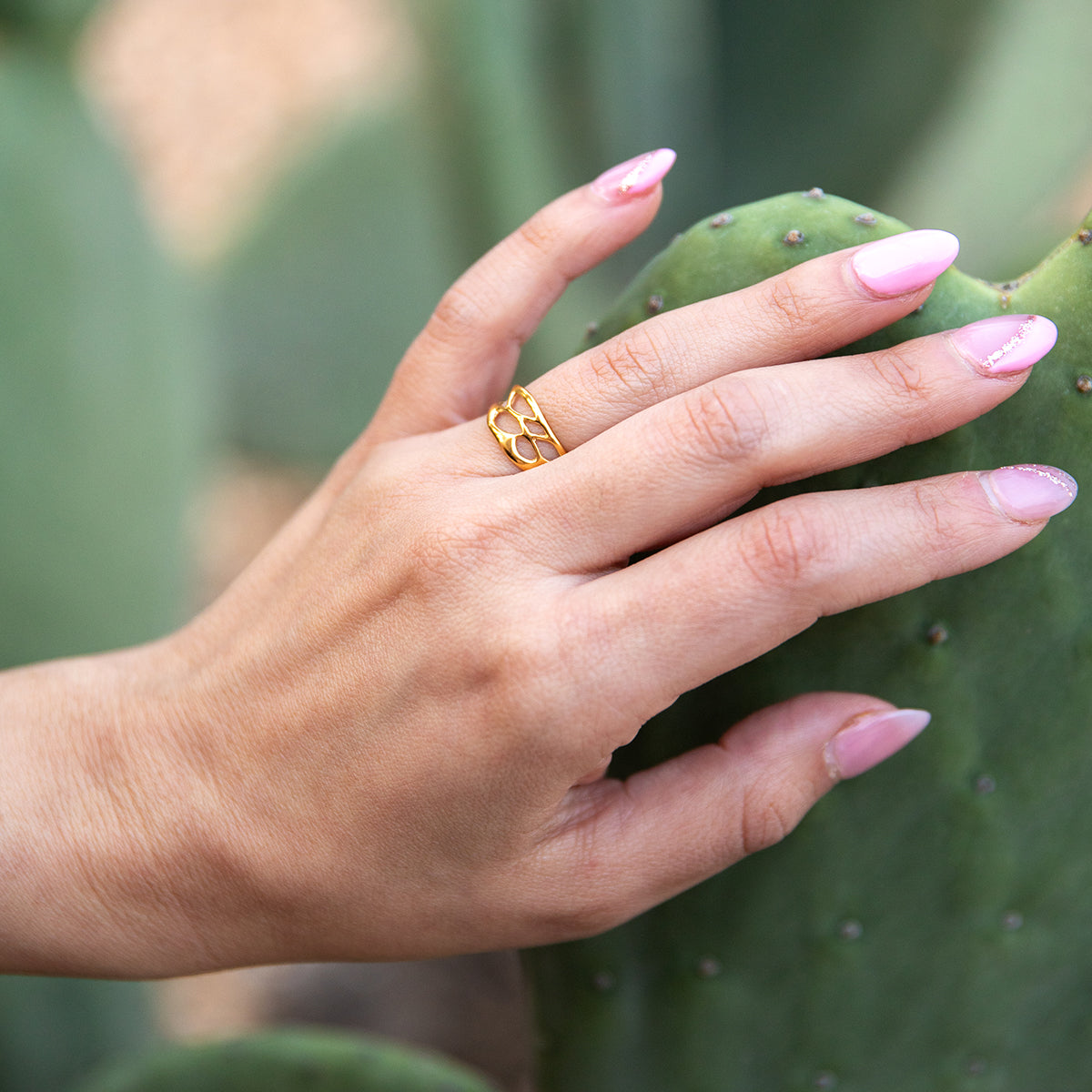 Gold Slender Band Cactus Ring