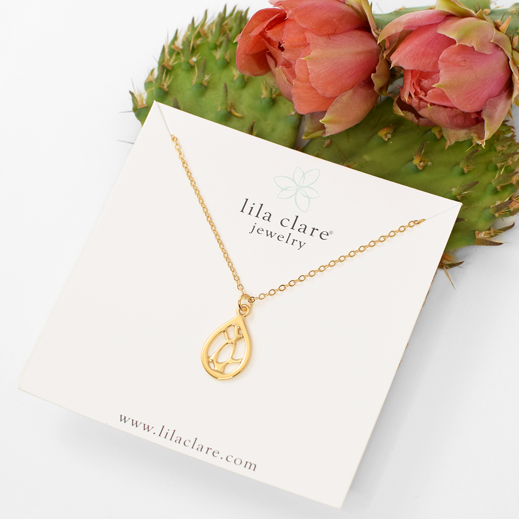 This 14k gold Small Teardrop Cactus Necklace is a delicate nod to the beauty of the desert. Featuring the pattern of prickly pear cactus fiber framed within a graceful teardrop shape, it’s a timeless piece with subtle texture and natural elegance. A dainty, classic design that lets you carry the desert close to your heart.