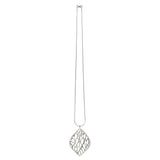 This silver cactus necklace features a statement pendant in the shape of a pointed teardrop with an intricate cactus pattern. Channel your inner desert love with this eye-catching piece and add a touch of Southwestern elegance to any outfit.