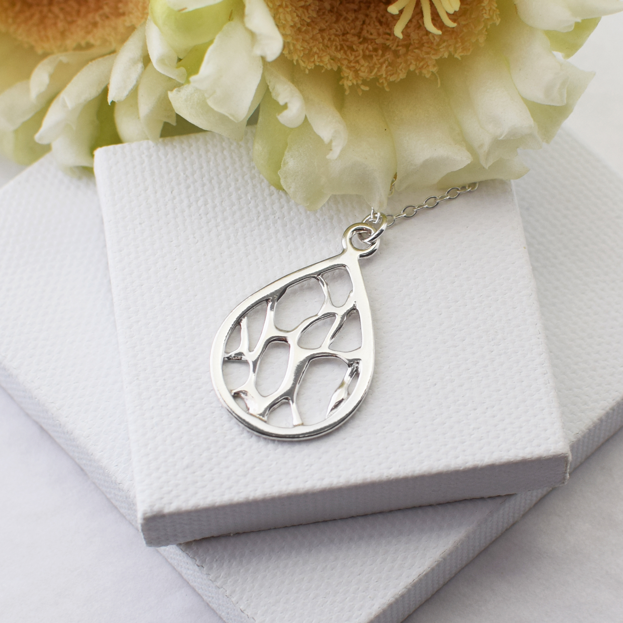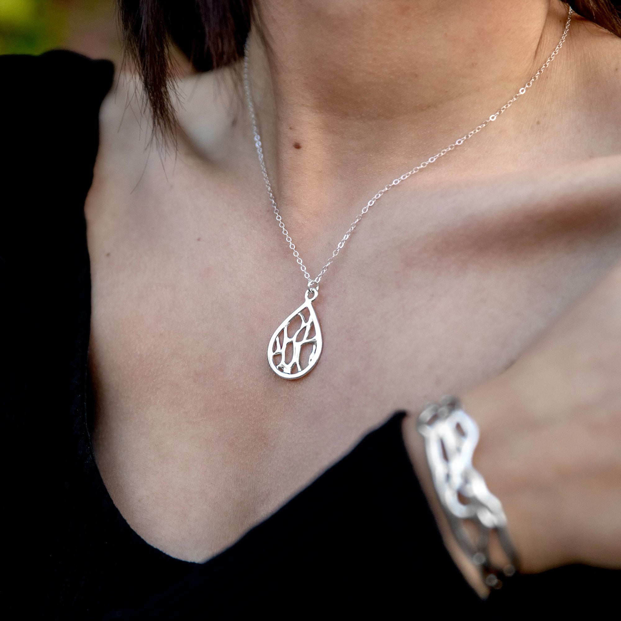 This eco - friendly handmade medium teardrop cactus skeleton pendant is solid sterling silver,made with 100% recycled sterling silver. Sterling silver chain and clasp.