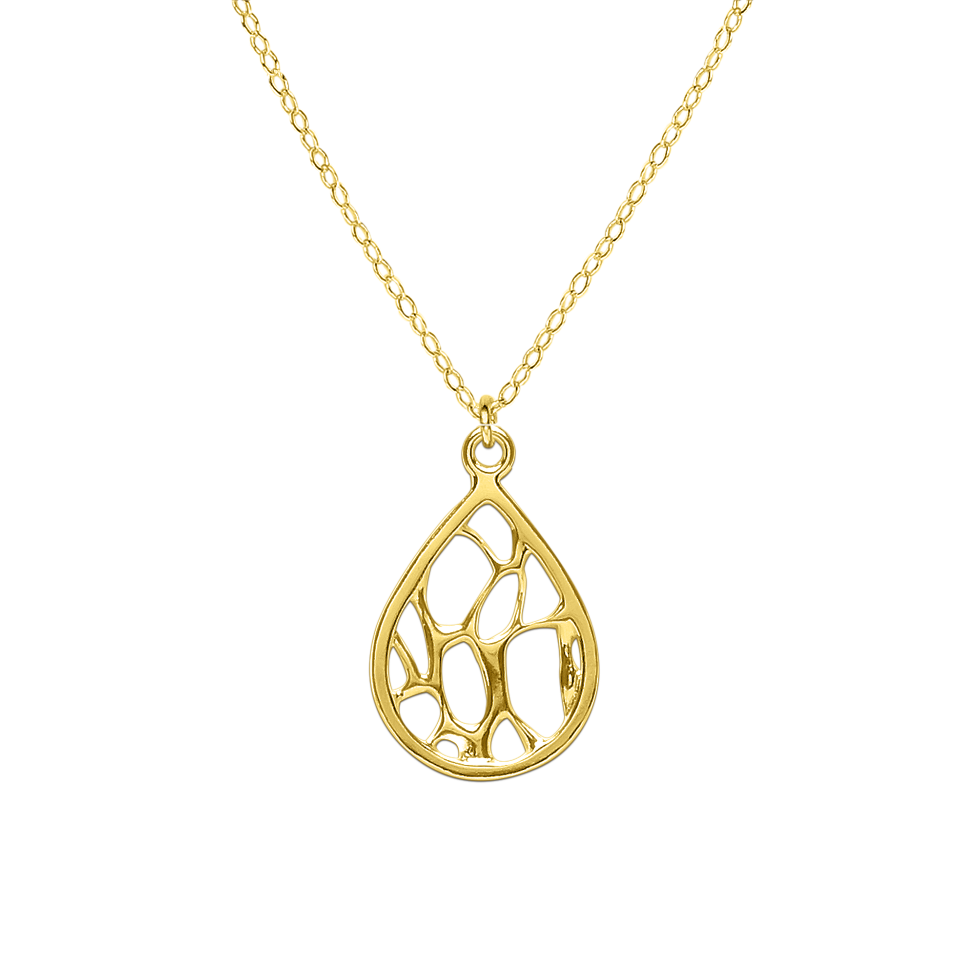 This Medium Gold Teardrop Cactus Necklace is a timeless piece of jewelry inspired by the beauty of the desert. The classic teardrop elegantly frames the prickly pear cactus pattern. Handmade in sterling silver.