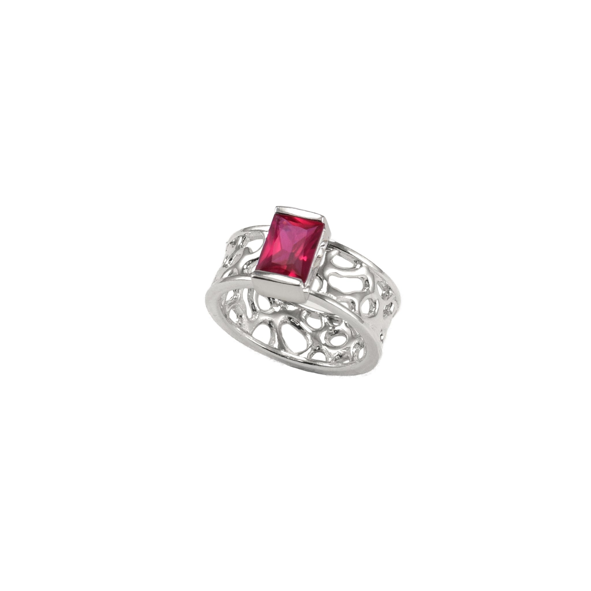 Silver Medium Band Cactus Ring with Baguette Gemstone