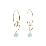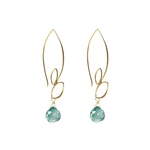 One of my favorites! Minimalist hoop earrings with gemstones so dainty you don't know you're wearing them, except for all of the compliments you'll get. These handmade gold open leaf hoop earrings feature faceted gemstones dangling from small 14k Gold Vermeil double leaf hoop earrings. Model wears the silver version of the earrings.