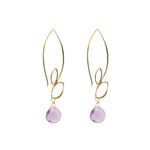 These open leaf hoop earrings are 14k Gold Vermeil over sterling silver, with semi-precious gemstones. Gold vermeil jewelry is considered more valuable than gold-plated because of the thickness of gold and its sterling silver base (as opposed to copper and brass base metals, typical of gold-plated jewelry).