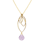Like leaves moving in the wind, the individually strung gold vermeil leaves on this necklace have easy, graceful movement. This handmade necklace features three dangling leaves, one with a faceted gemstone.