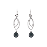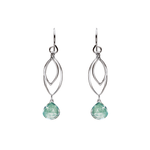These dangling silver leaf earrings are solid sterling silver, made with a minimum of 60% recycled silver. Semi-precious gemstones.