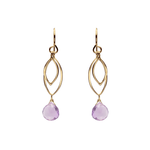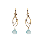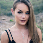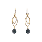 These handmade leaf earrings feature two individually dangling 14k Gold Vermeil leaves, one with a faceted semi precious gemstone. Model wears the silver version of the earrings.