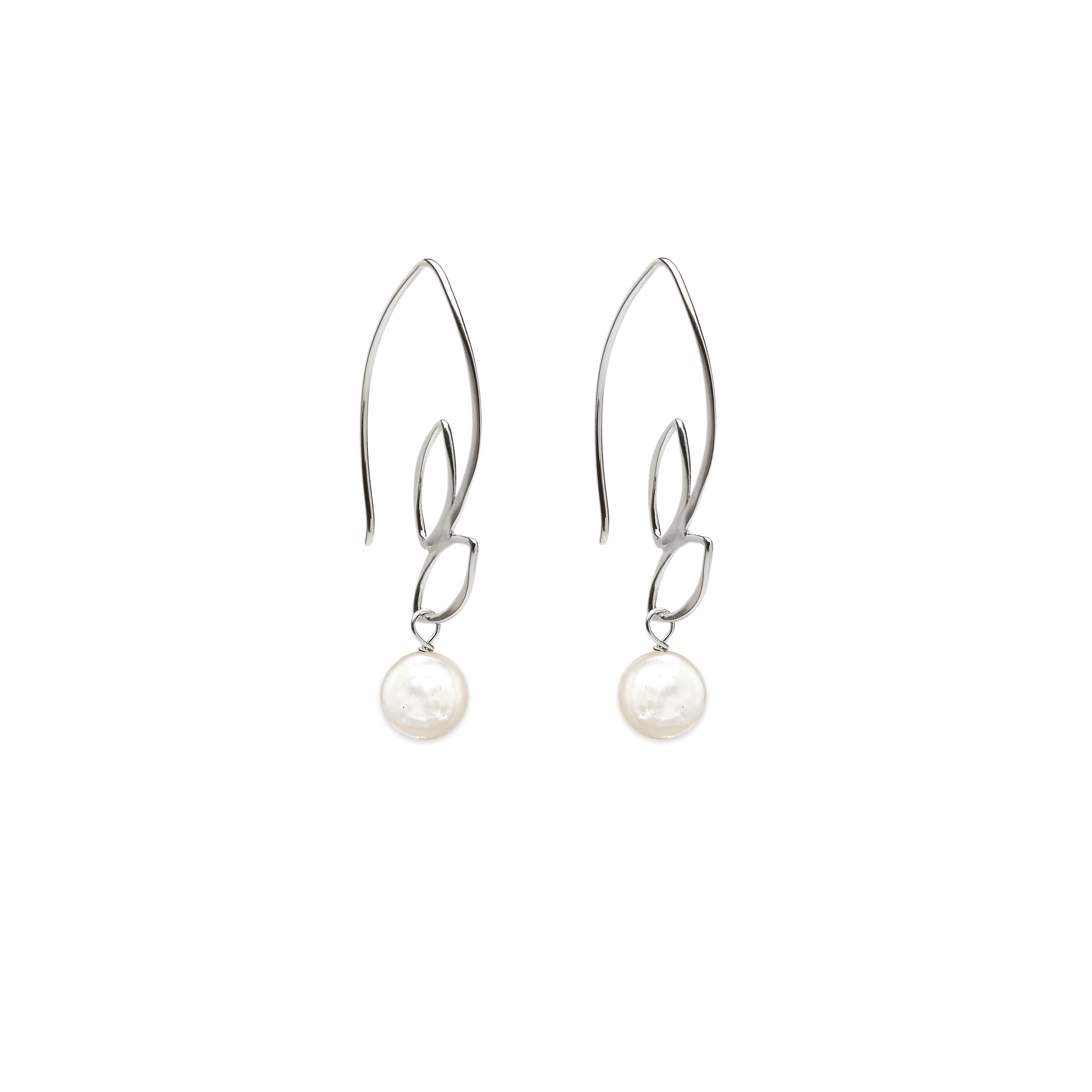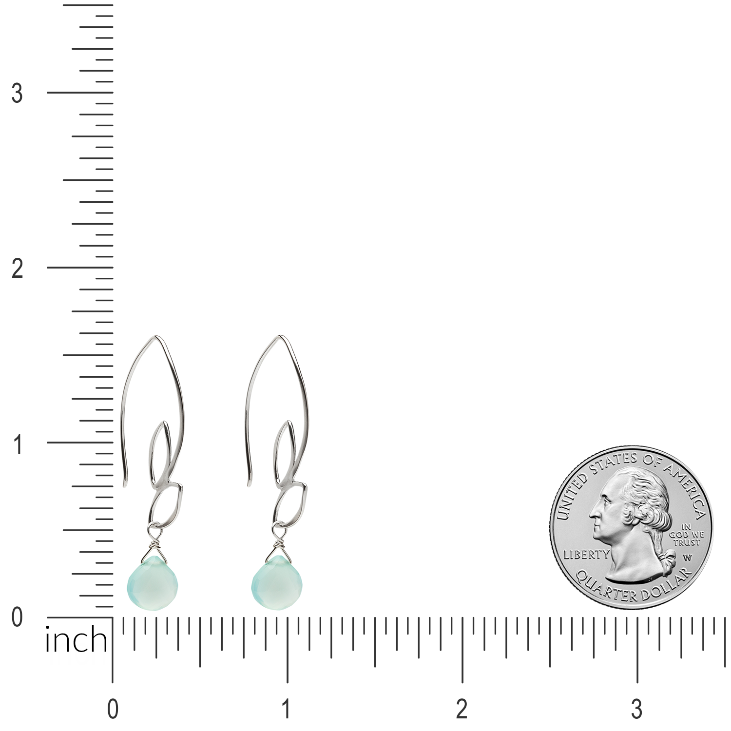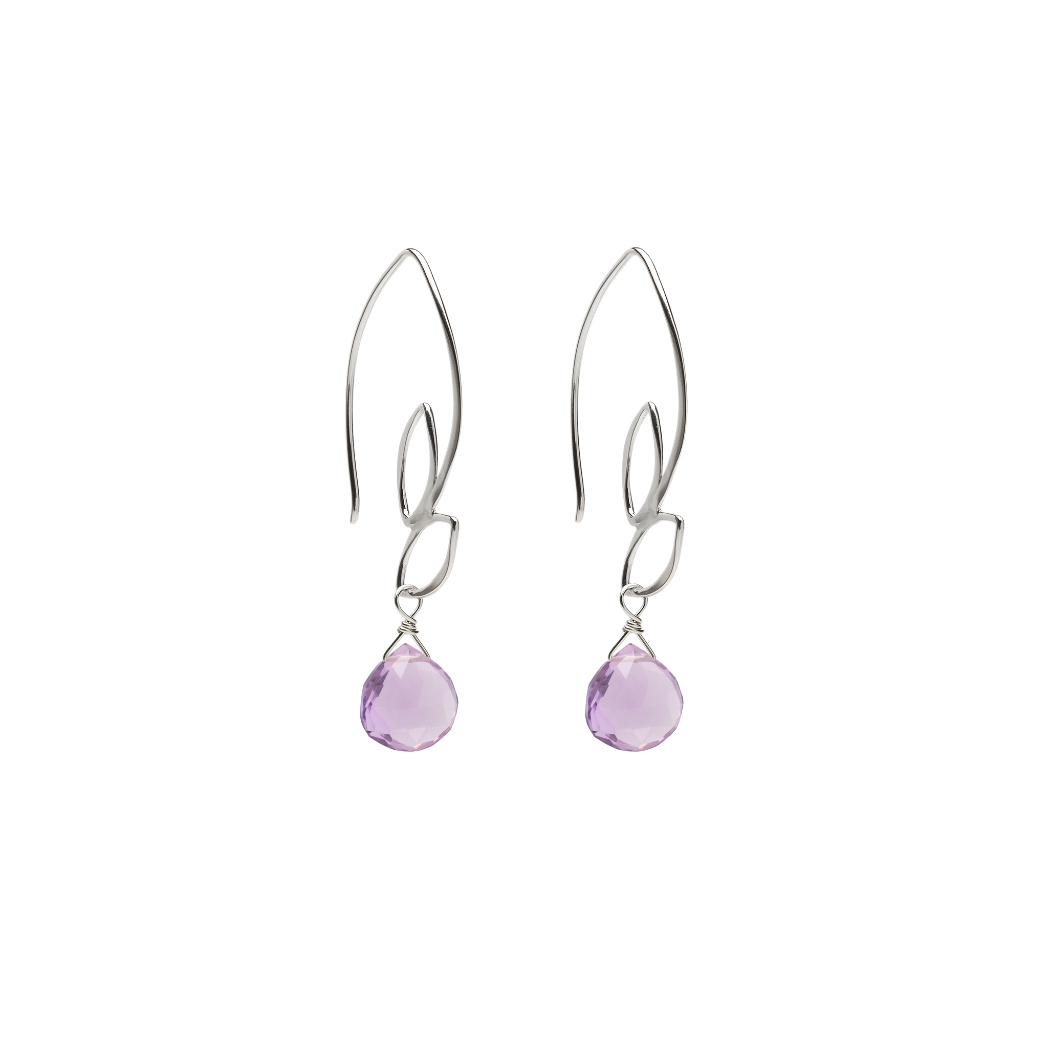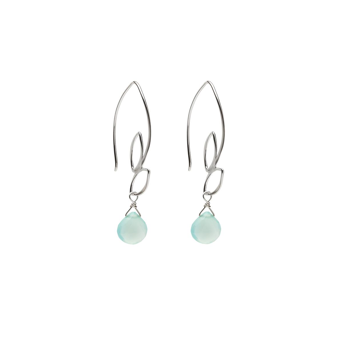 These open leaf hoop earrings are sterling silver, made with a minimum of 60% recycled silver. Semi-precious gemstones.