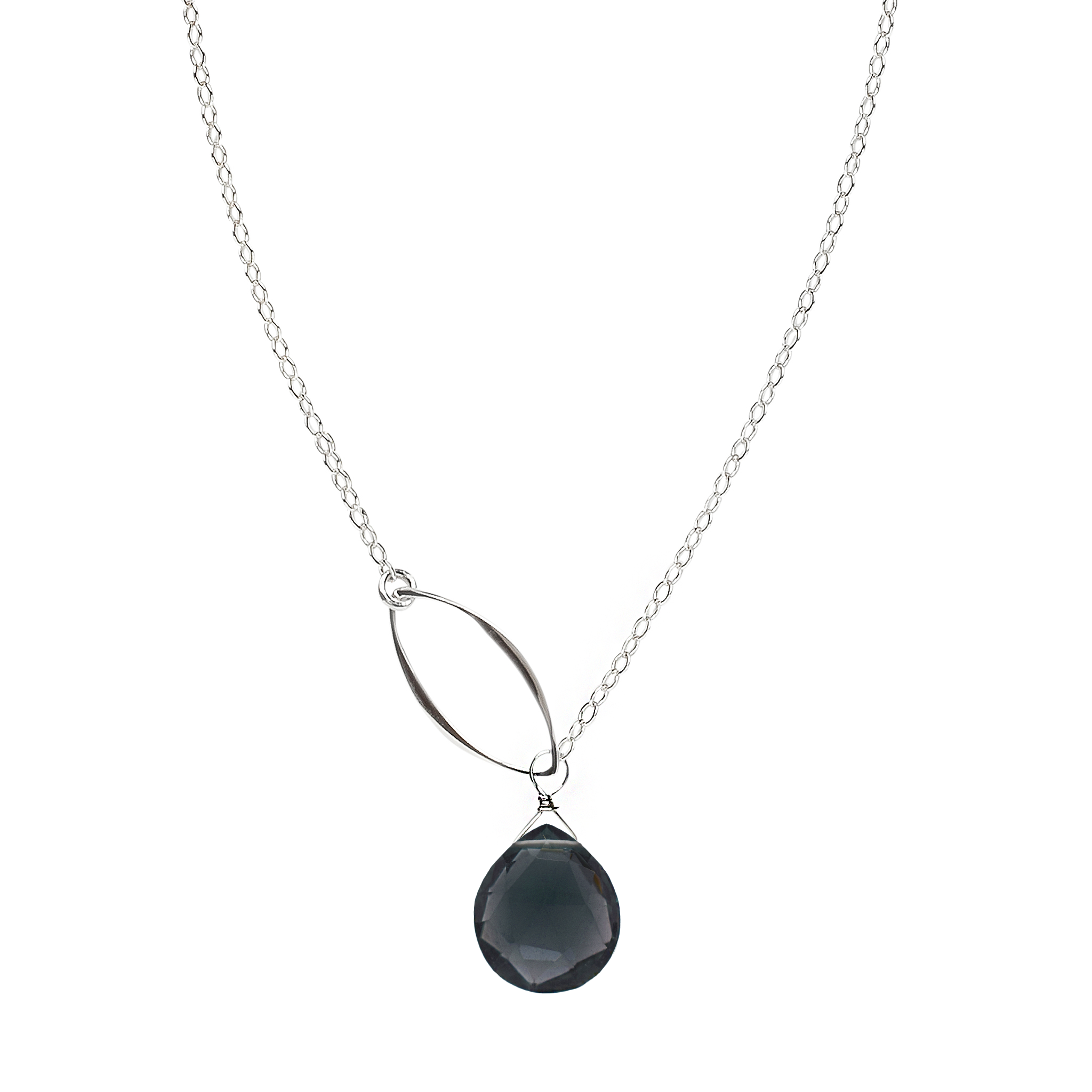 This is my bestselling necklace! Designed to look like a lariat, but the dangling gem is wire-wrapped to the asymmetrically-placed open leaf, keeping the leaf and gemstone in place. You will wear this necklace everyday and get tons of compliments!