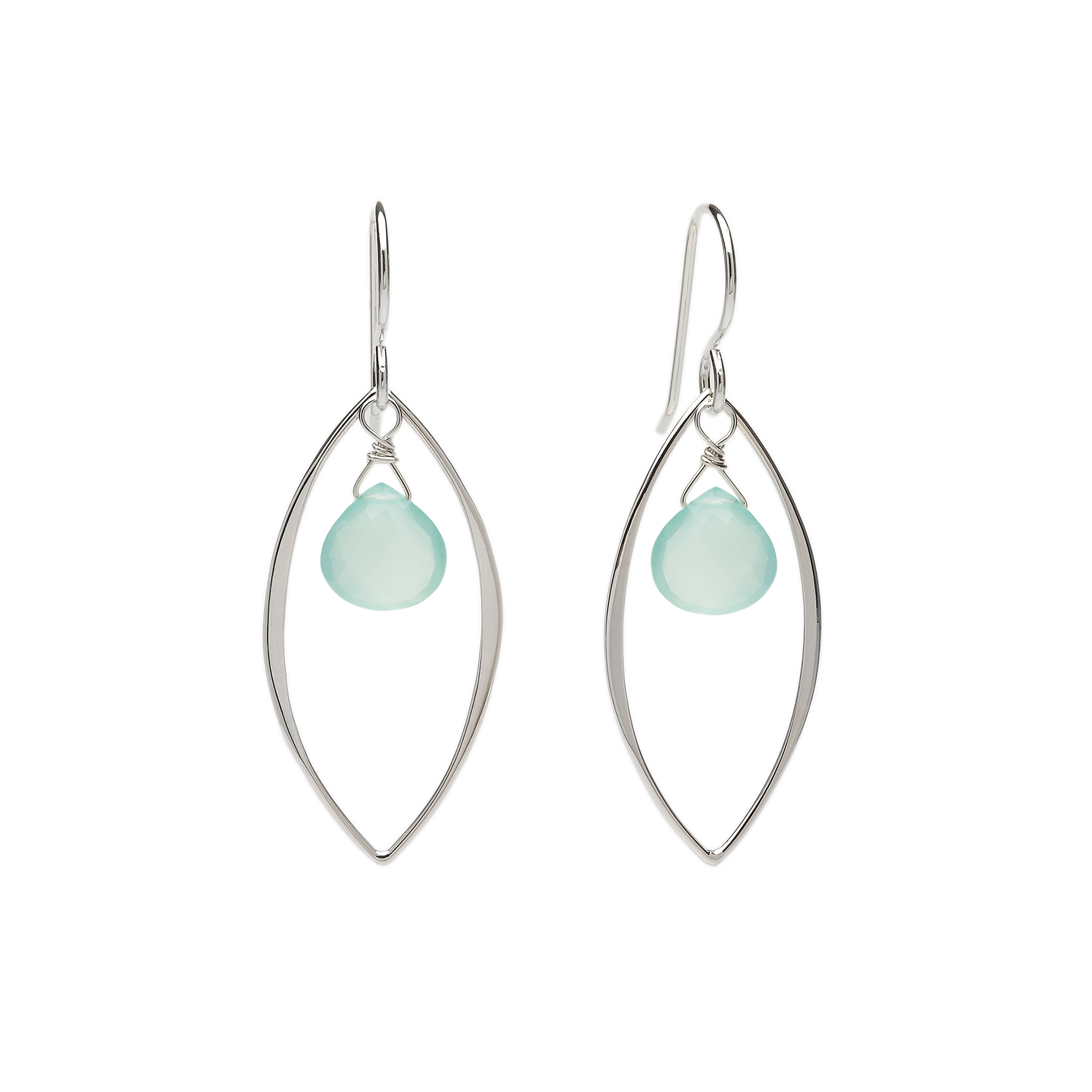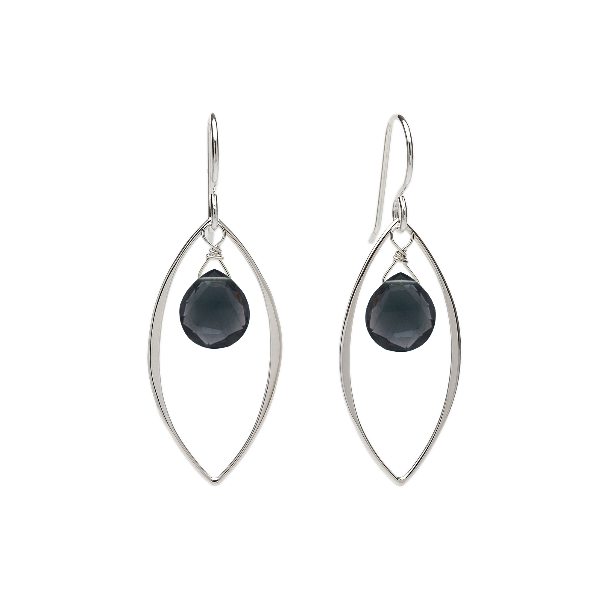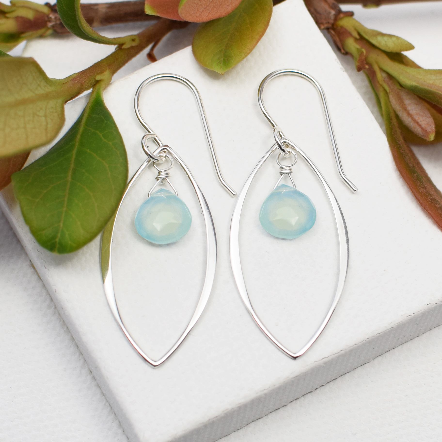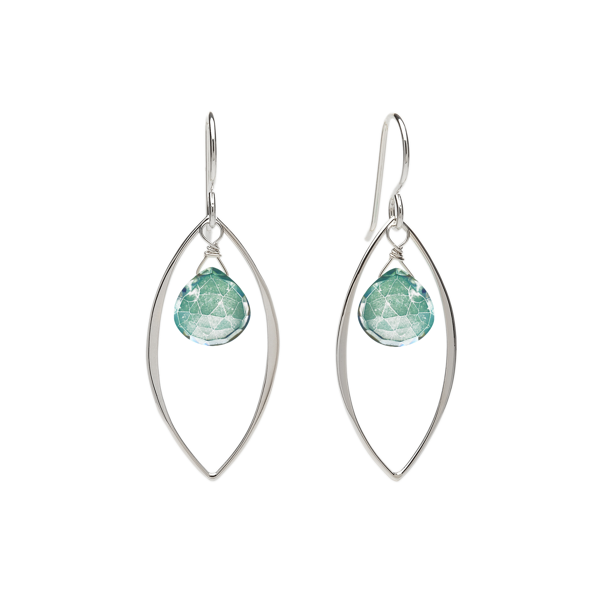 These silver open leaf earrings are solid sterling silver, made with a minimum of 60% recycled silver. Semi-precious gemstones.