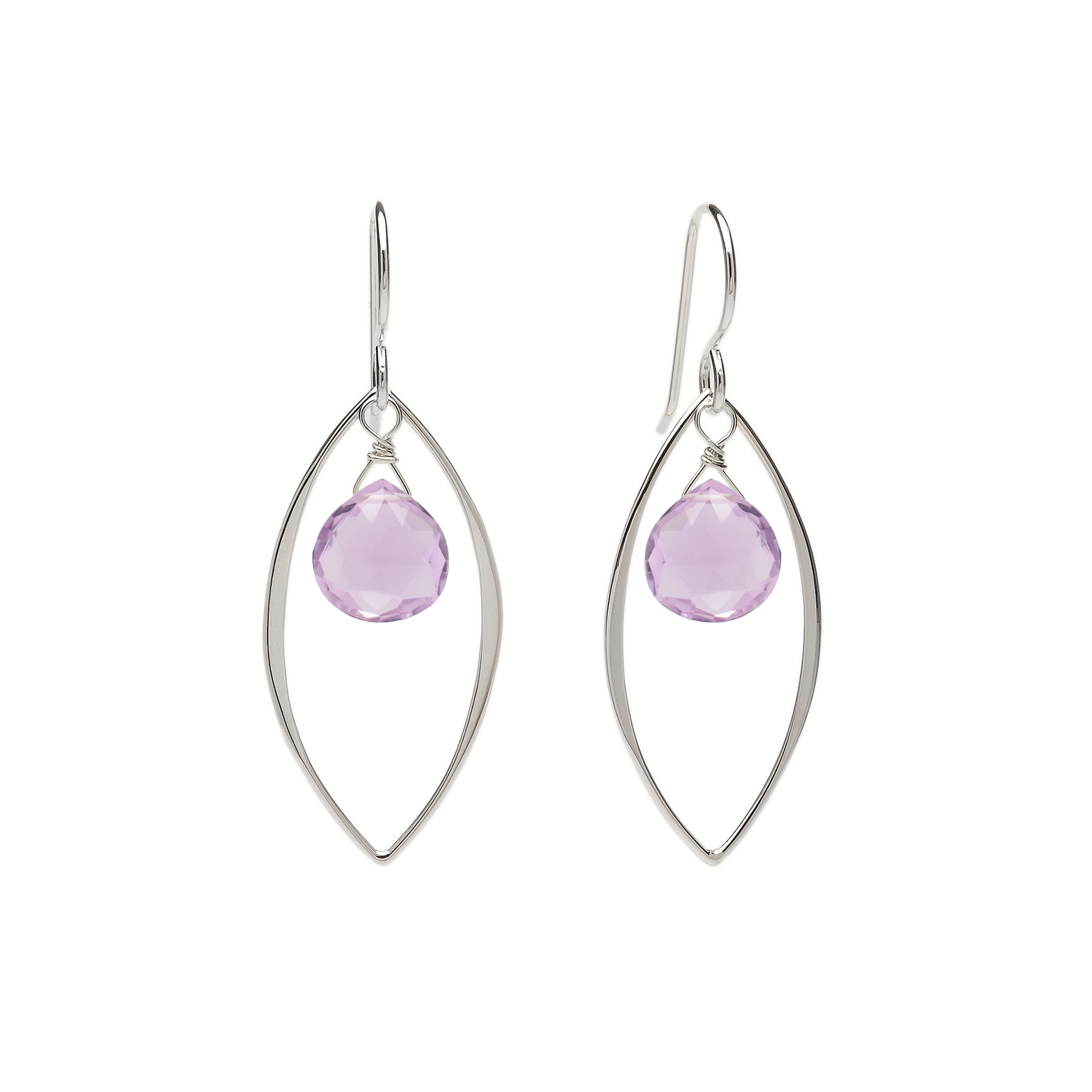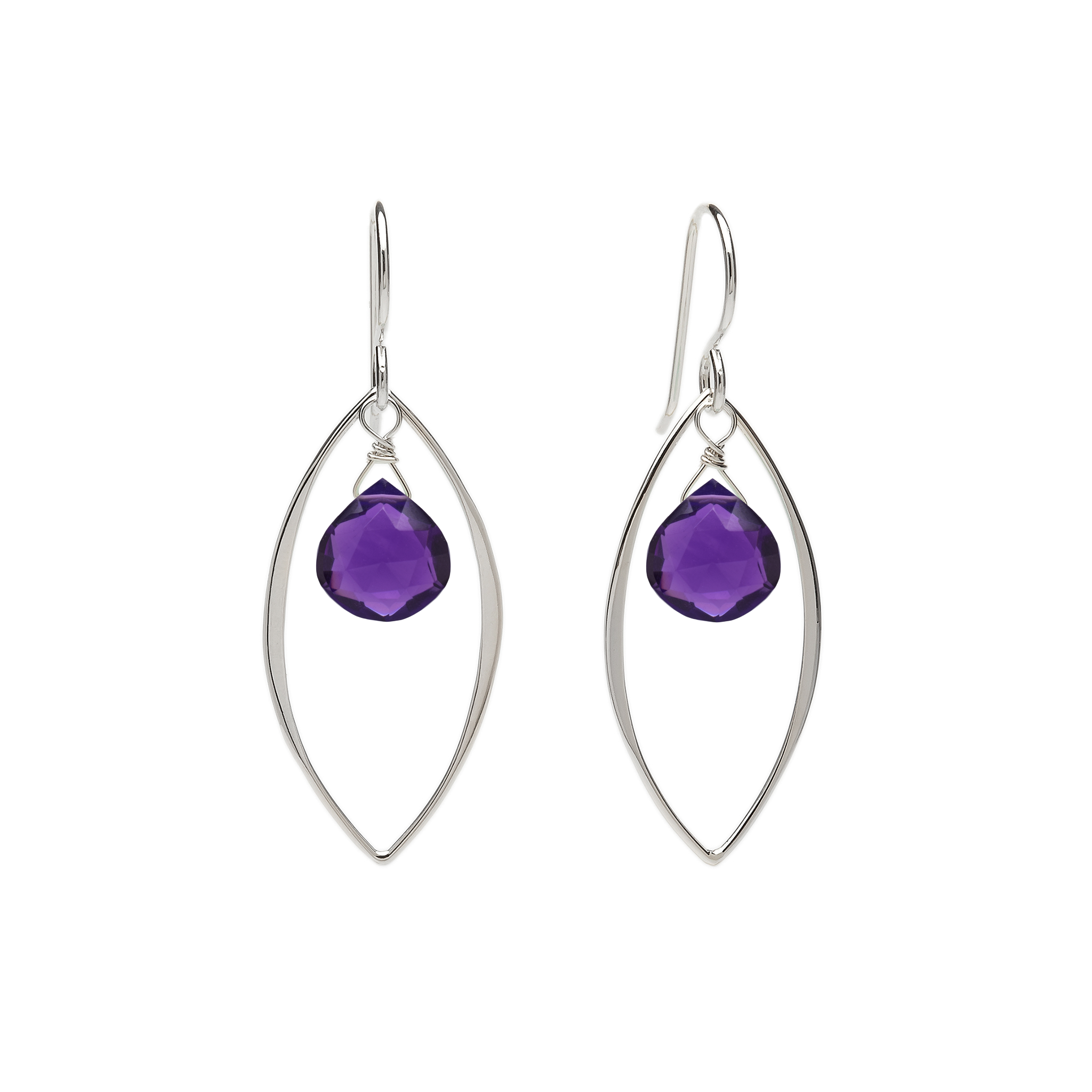 Like leaves cradling raindrops, these silver open leaf earrings have gorgeous movement and grace. These handmade leaf earrings feature faceted gemstones dangling within large sterling silver leaves.
