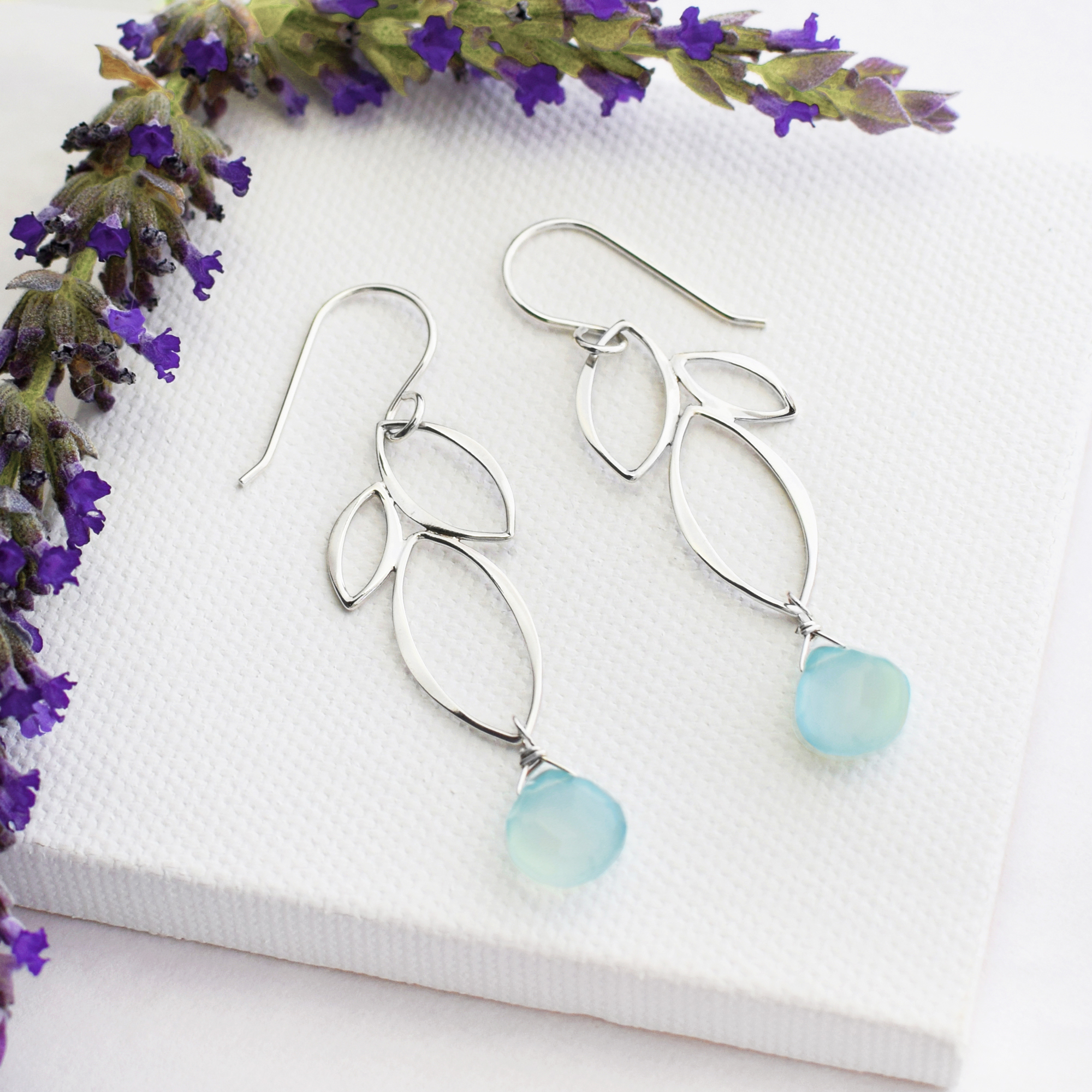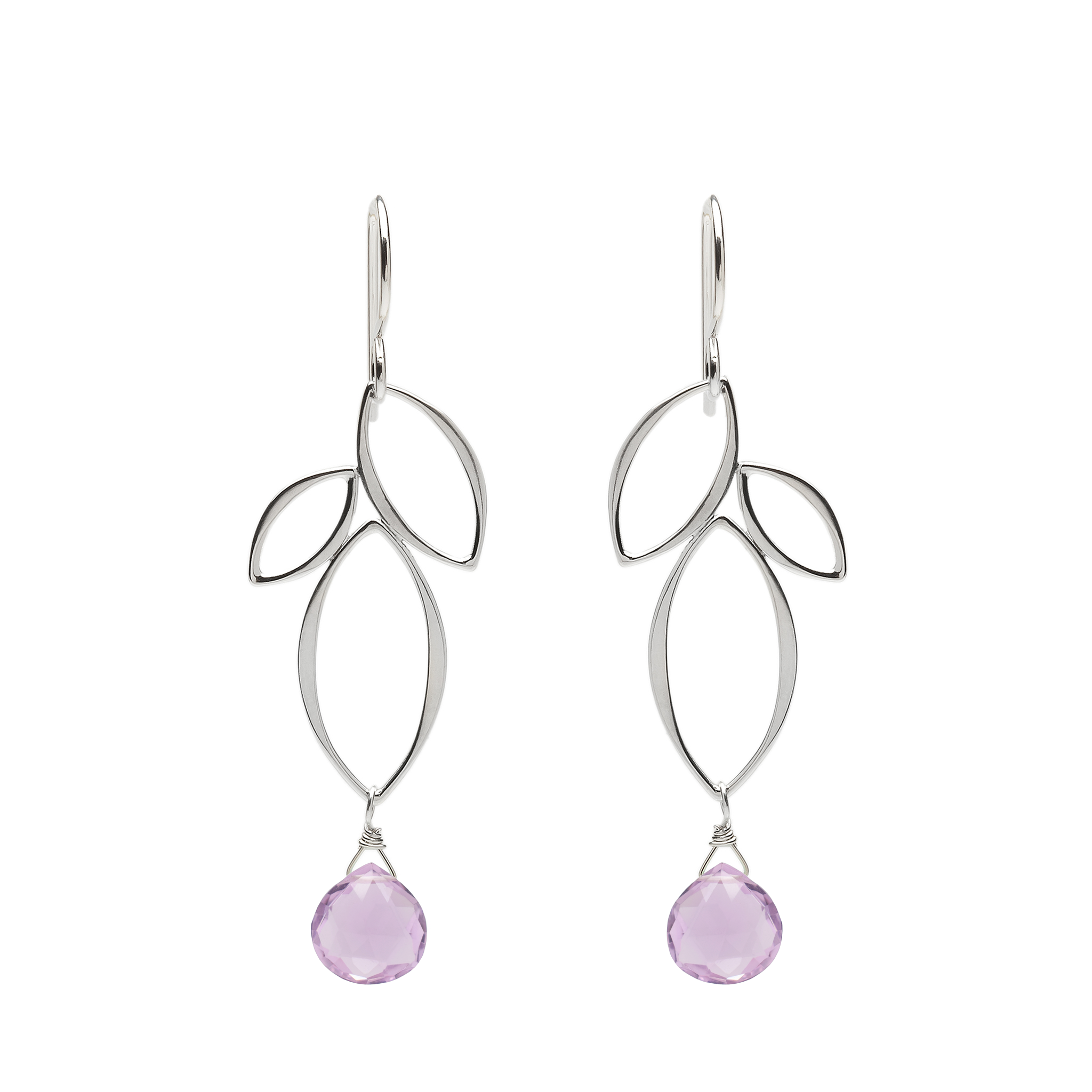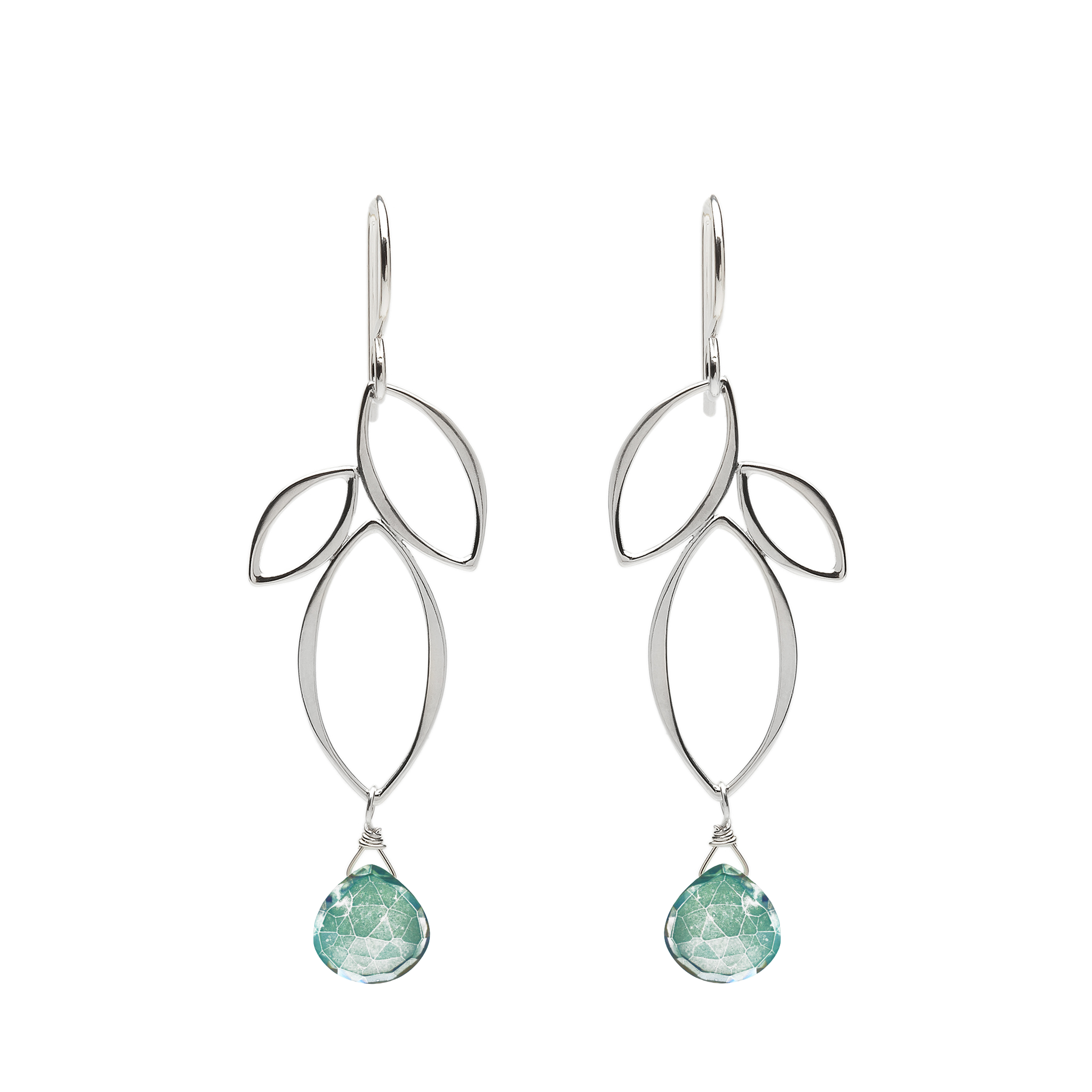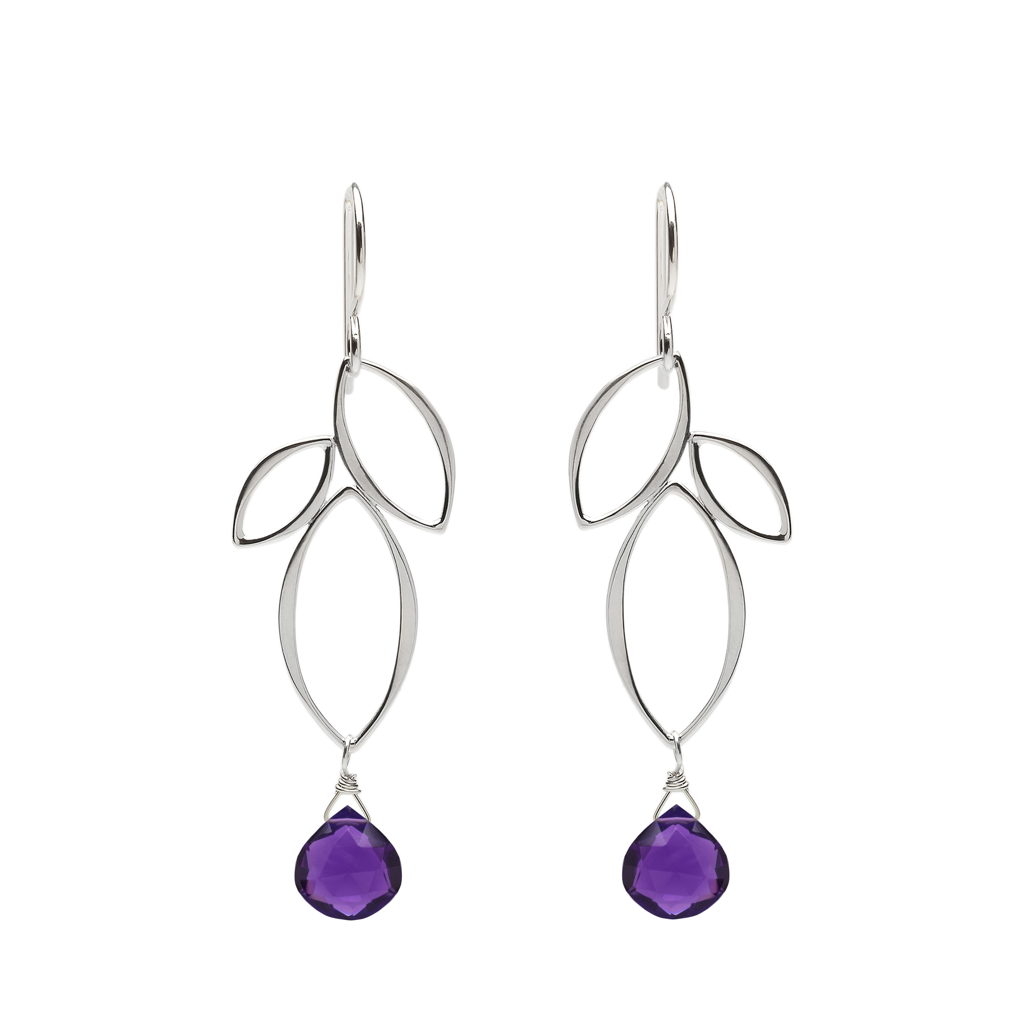 Inspired by dangling fuchsia flowers, these nature-inspired open leaf earrings are delicate yet striking. These handmade flower petal earrings feature faceted gemstones dangling from sterling silver flowers.