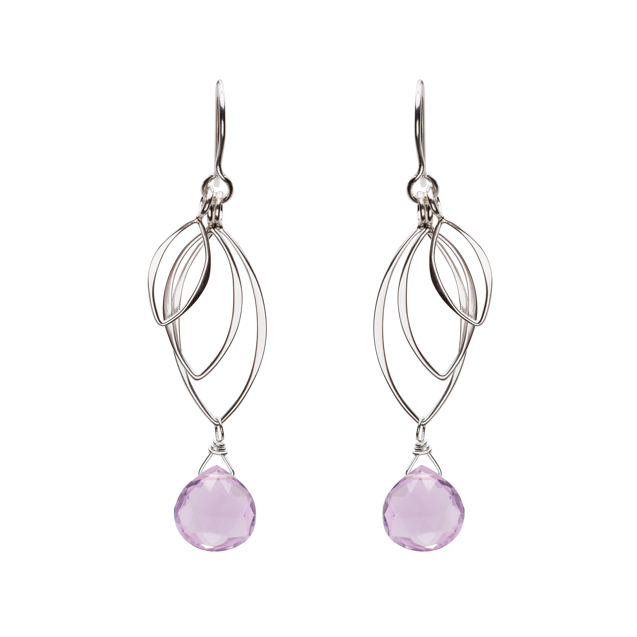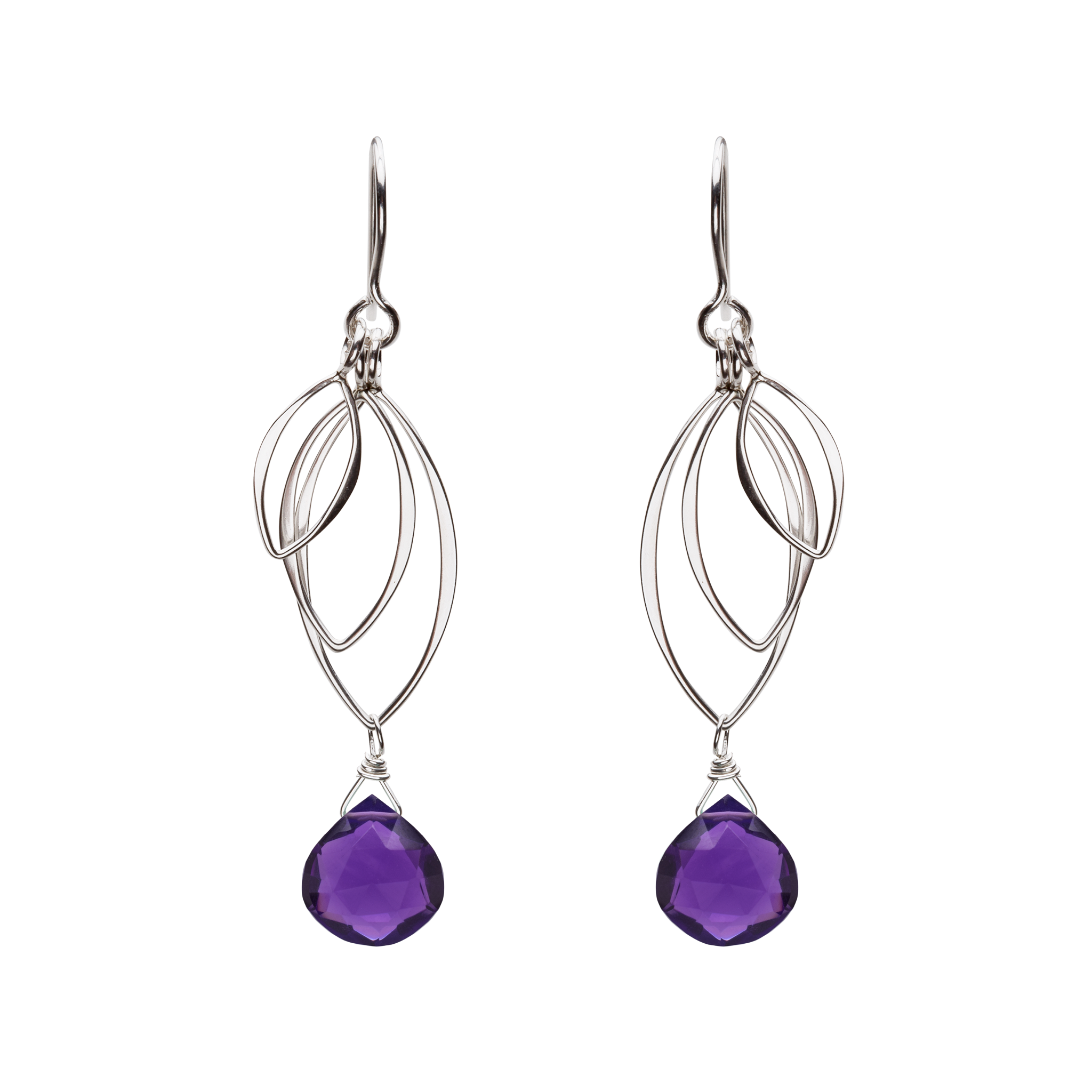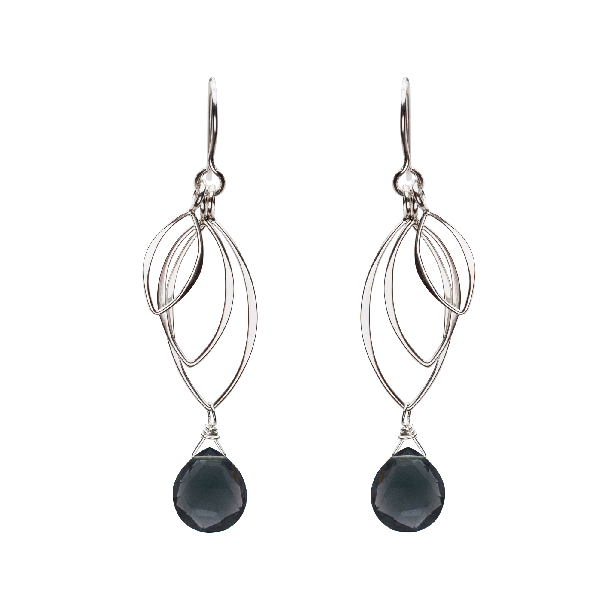 Like leaves moving in the wind, these sterling silver leaf earrings dangle freely. Each handmade earring features three individually dangling sterling silver leaves, with faceted semi precious gemstone.