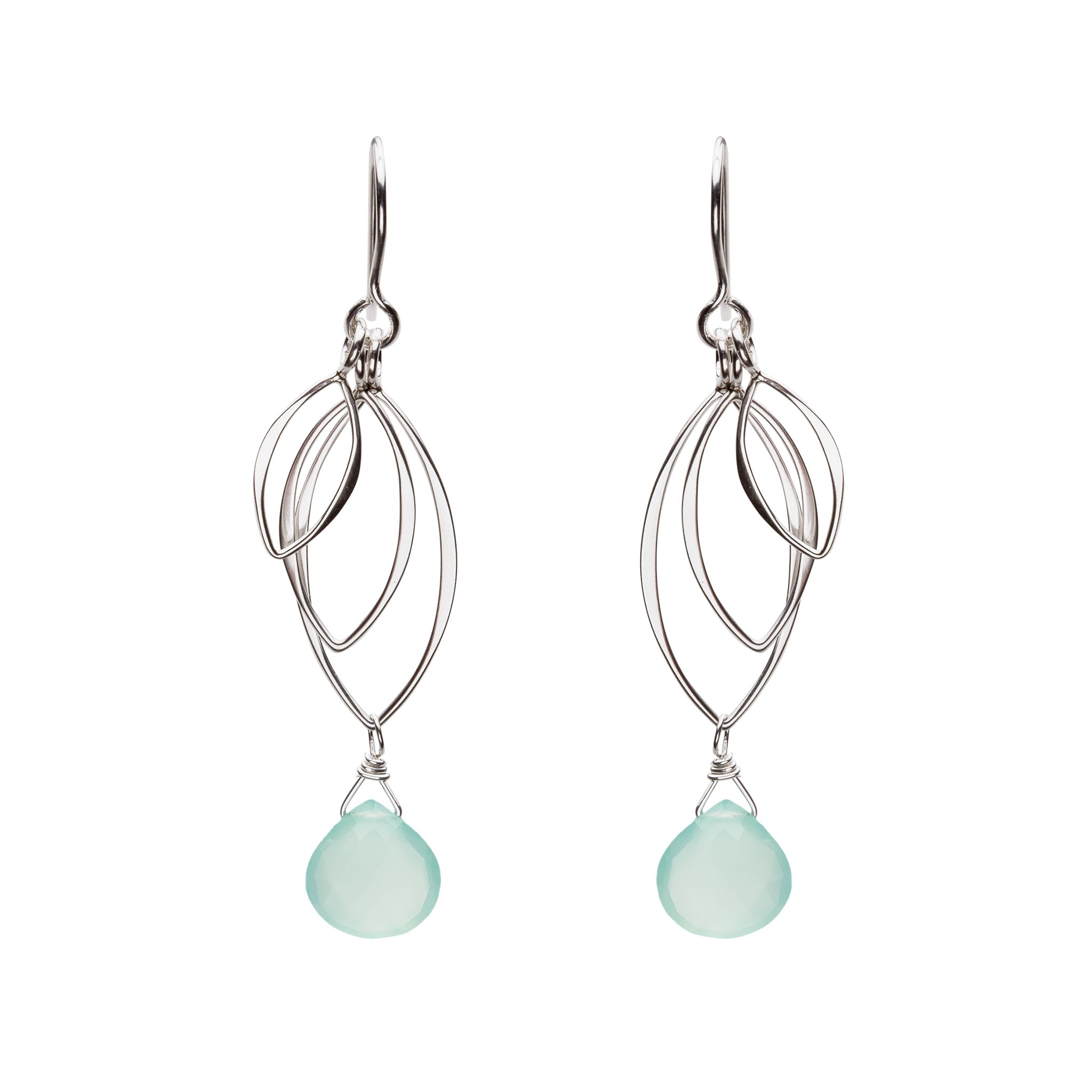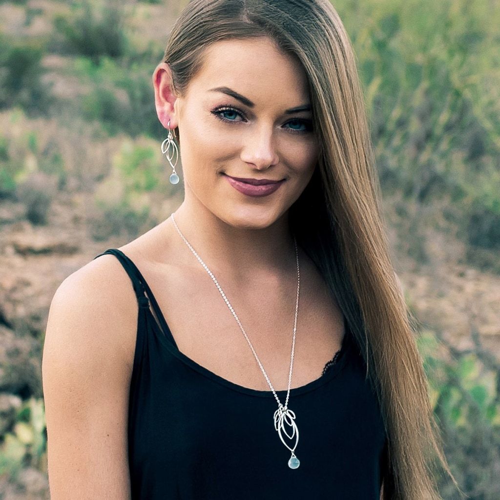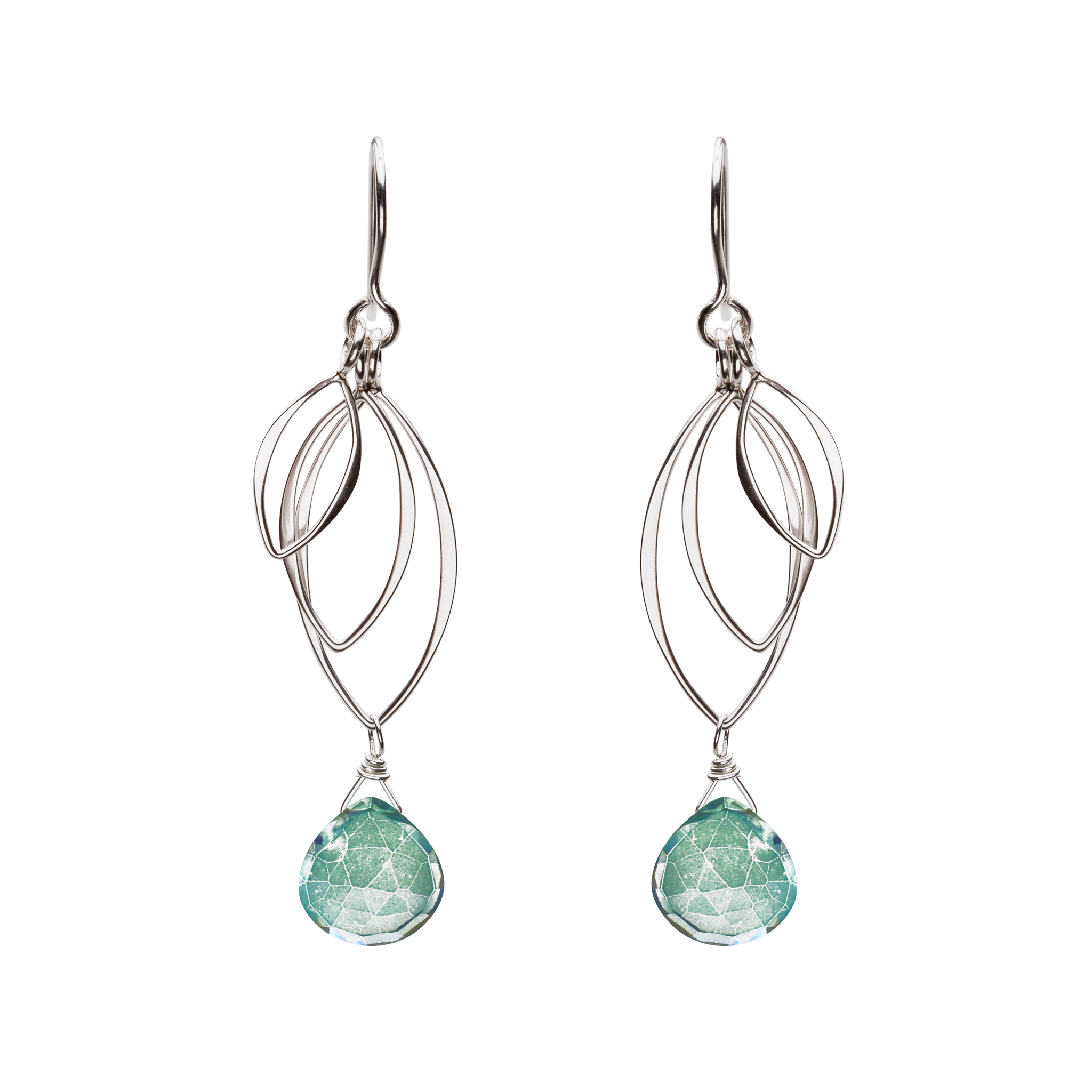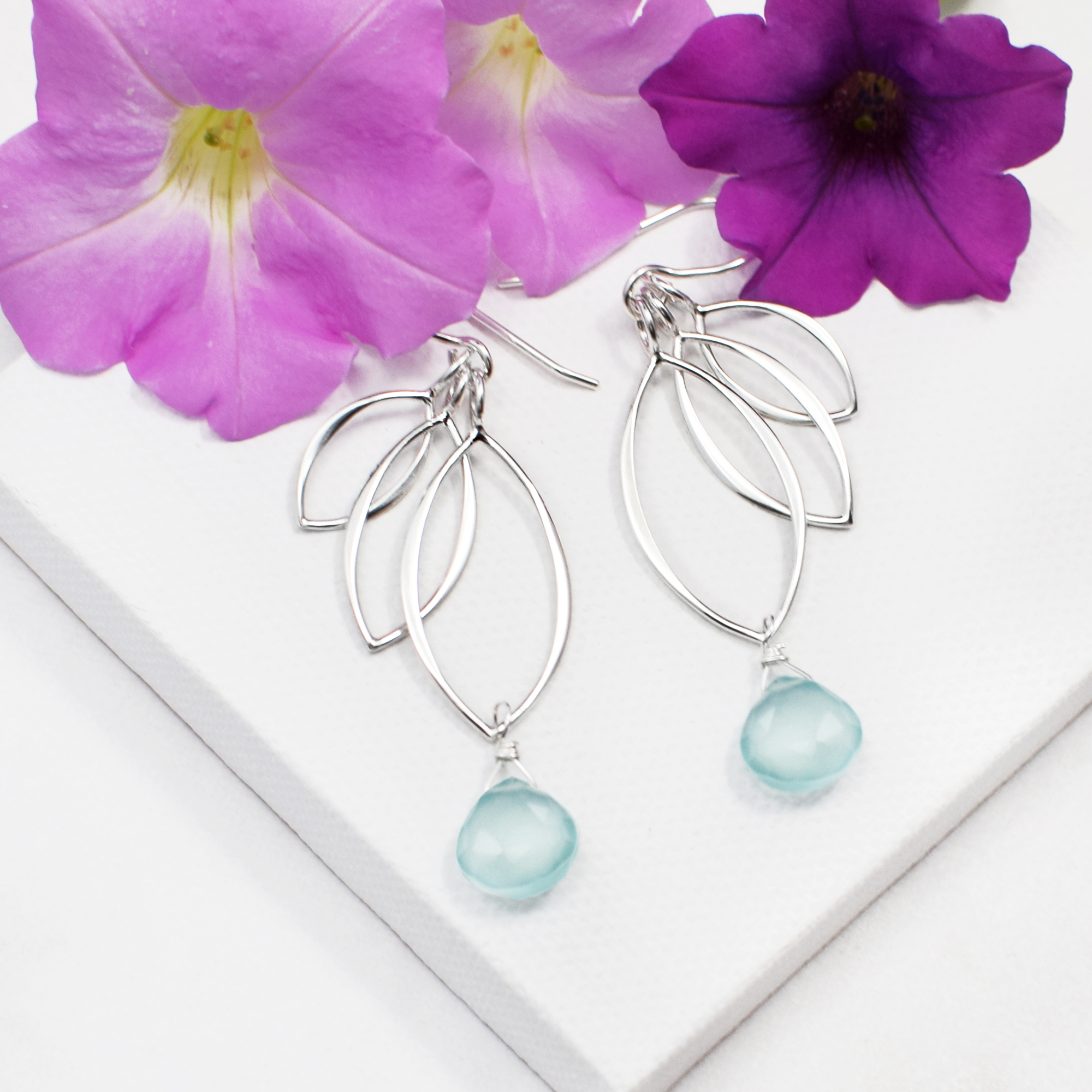 These dangling silver leaf earrings are solid sterling silver, made with a minimum of 60% recycled silver Semi-precious gemstones.