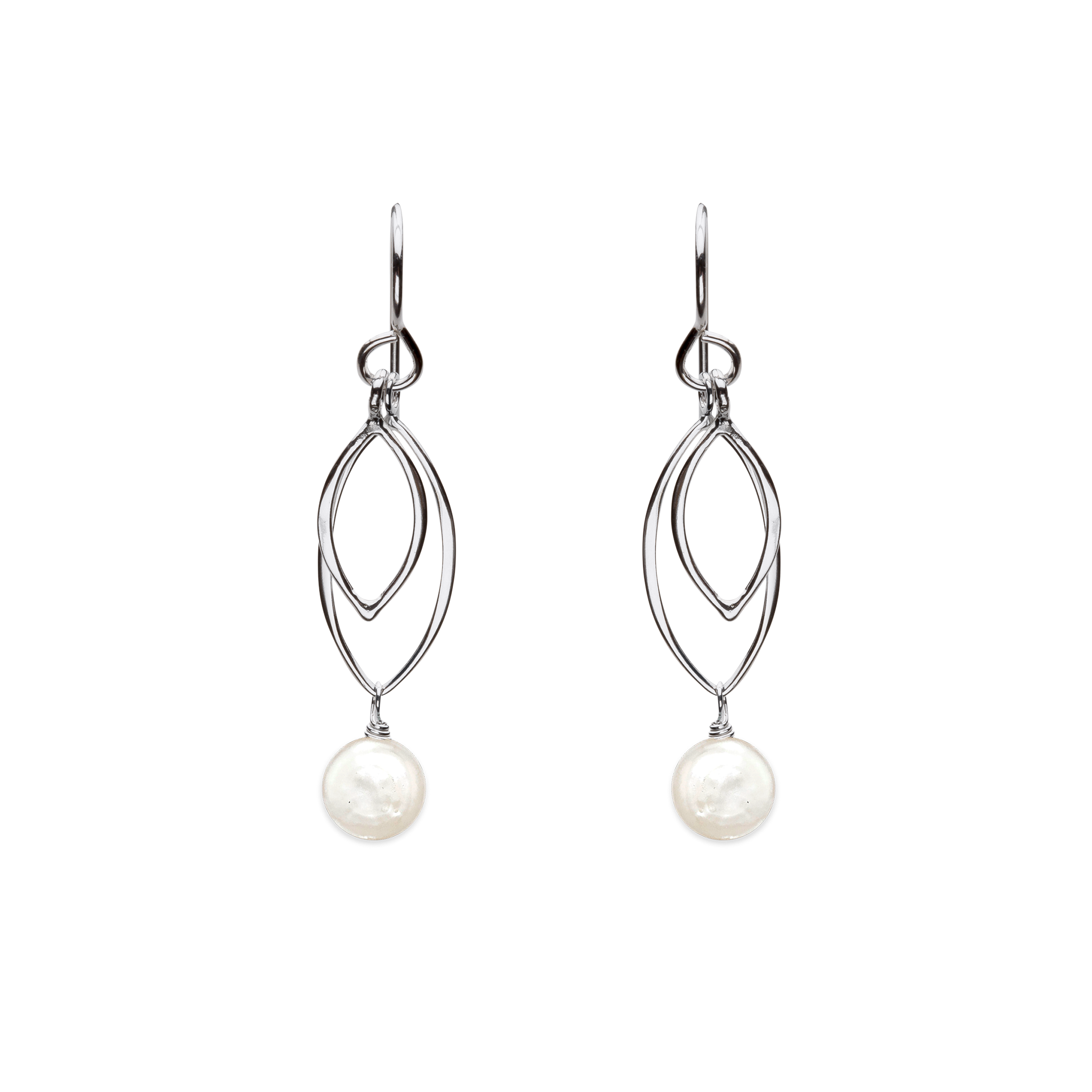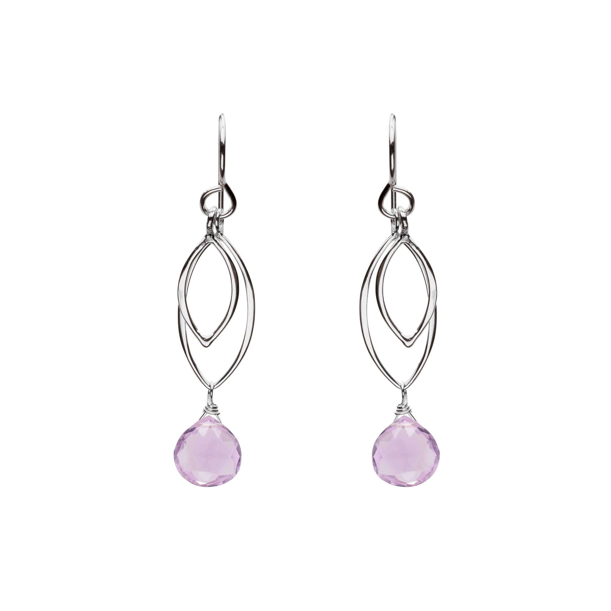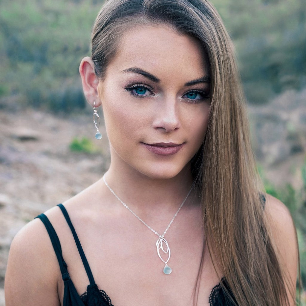 These dangling silver leaf earrings are solid sterling silver, made with a minimum of 60% recycled silver. Semi-precious gemstones.