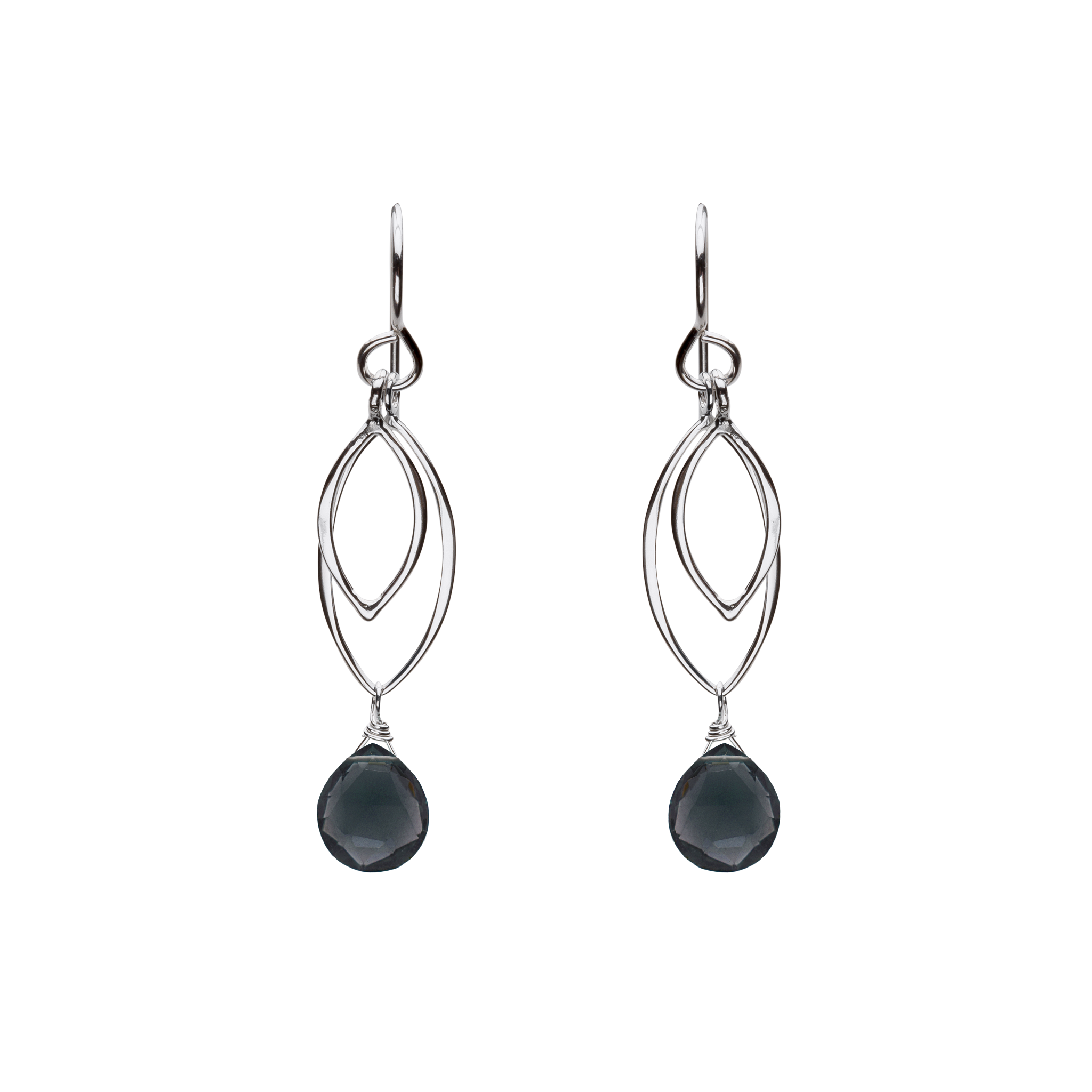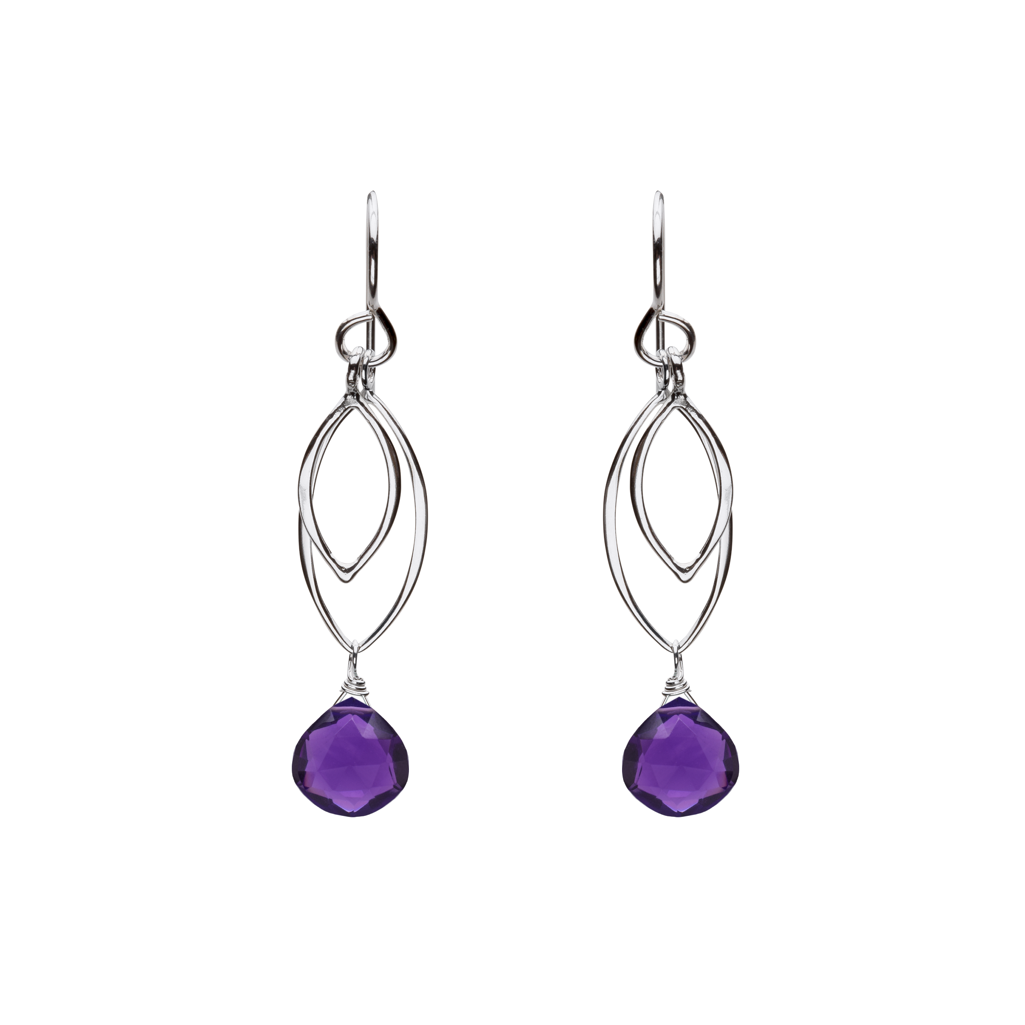 Like leaves moving in the wind, these sterling silver leaf earrings dangle freely. These handmade earrings feature two individually dangling sterling silver leaves, with faceted semi precious gemstones.