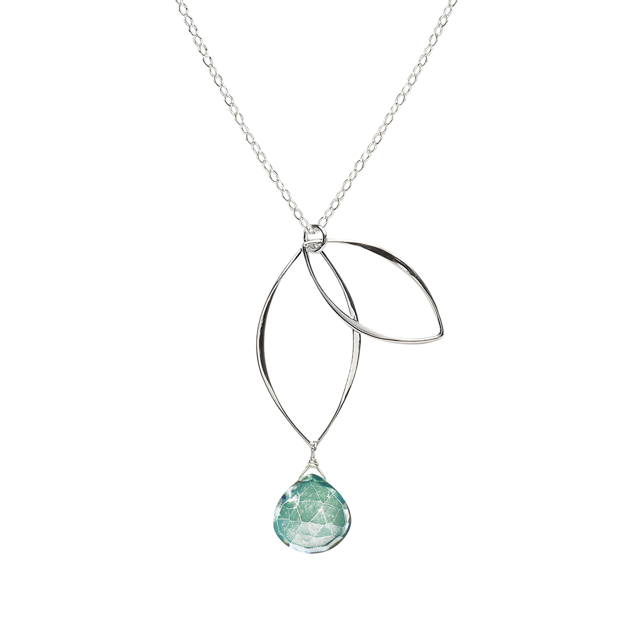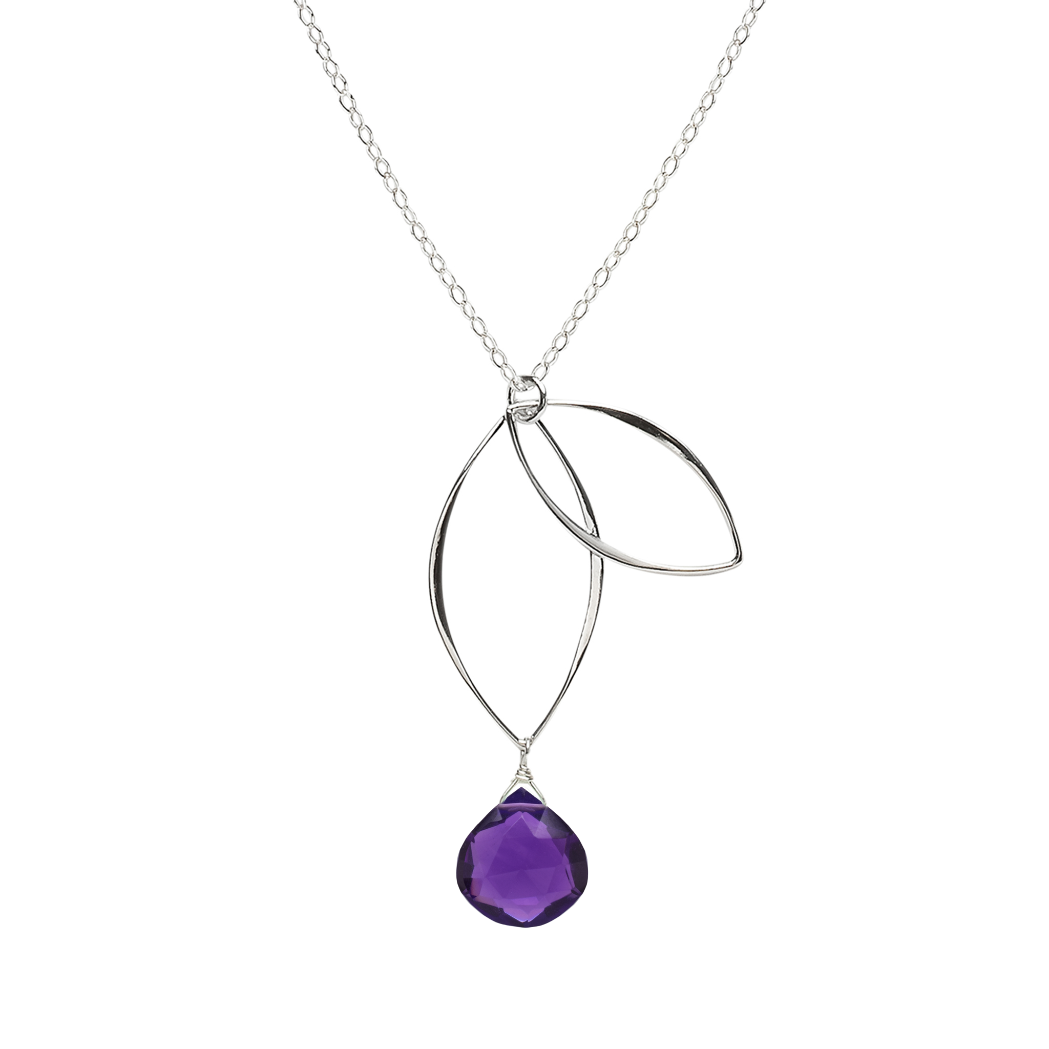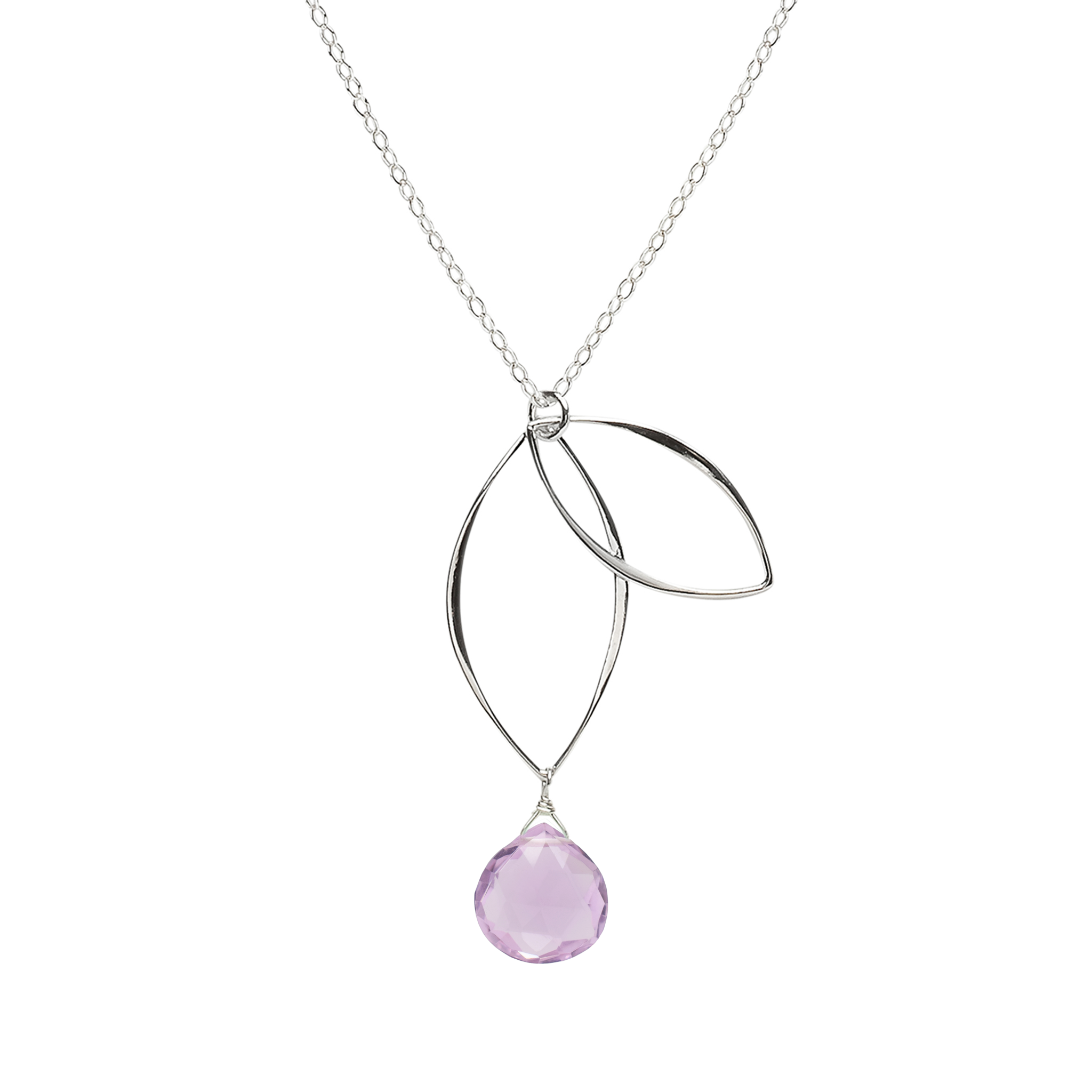 This handmade flower necklace features a faceted gemstone dangling from a sterling silver petal pendant.