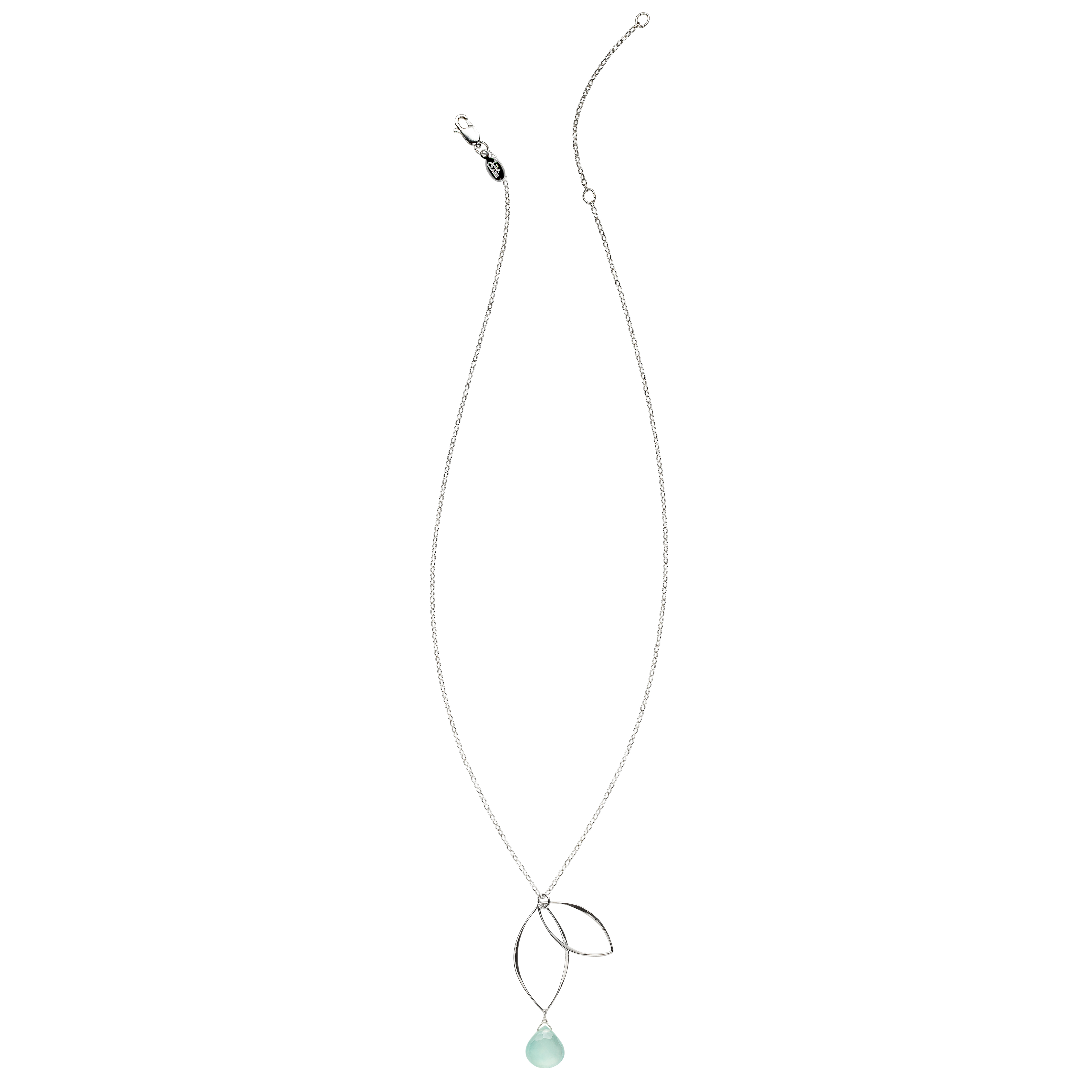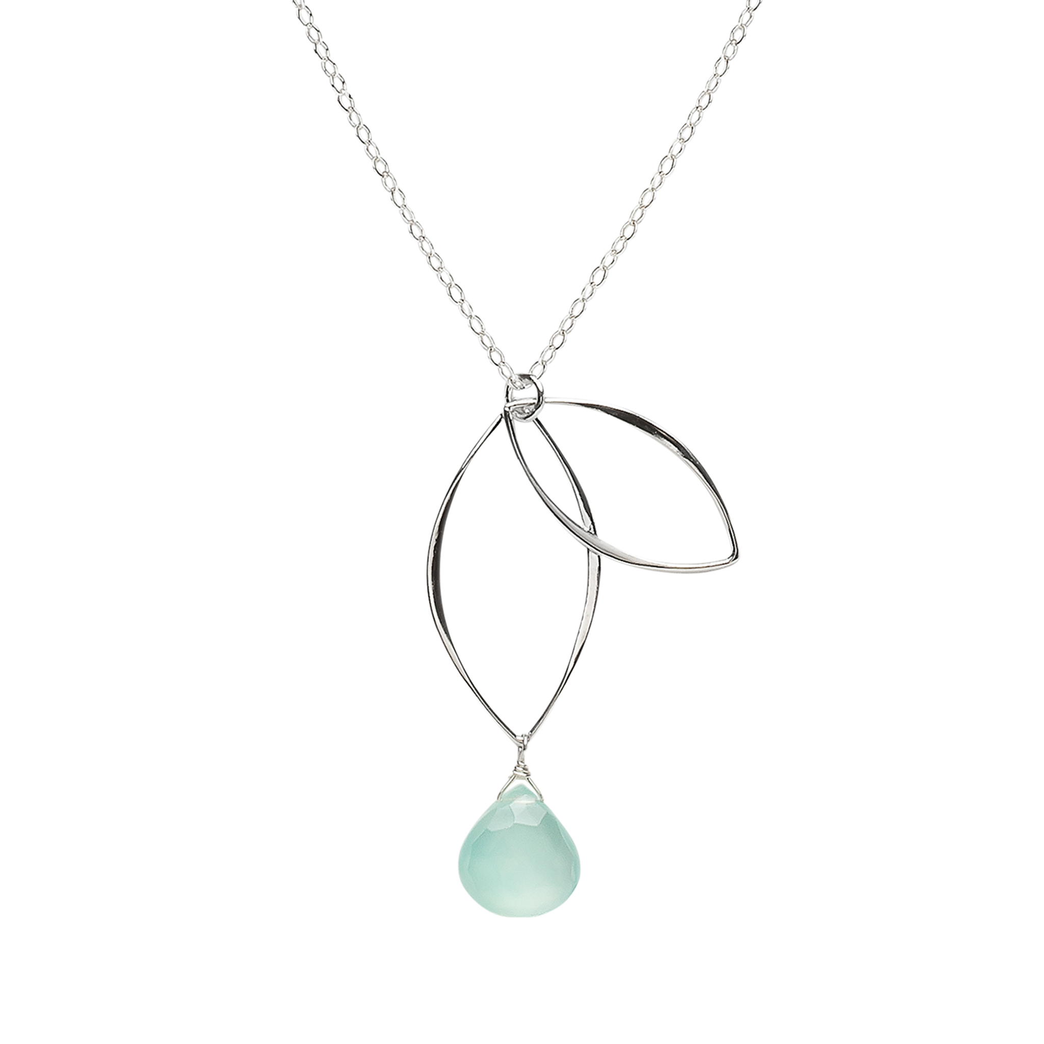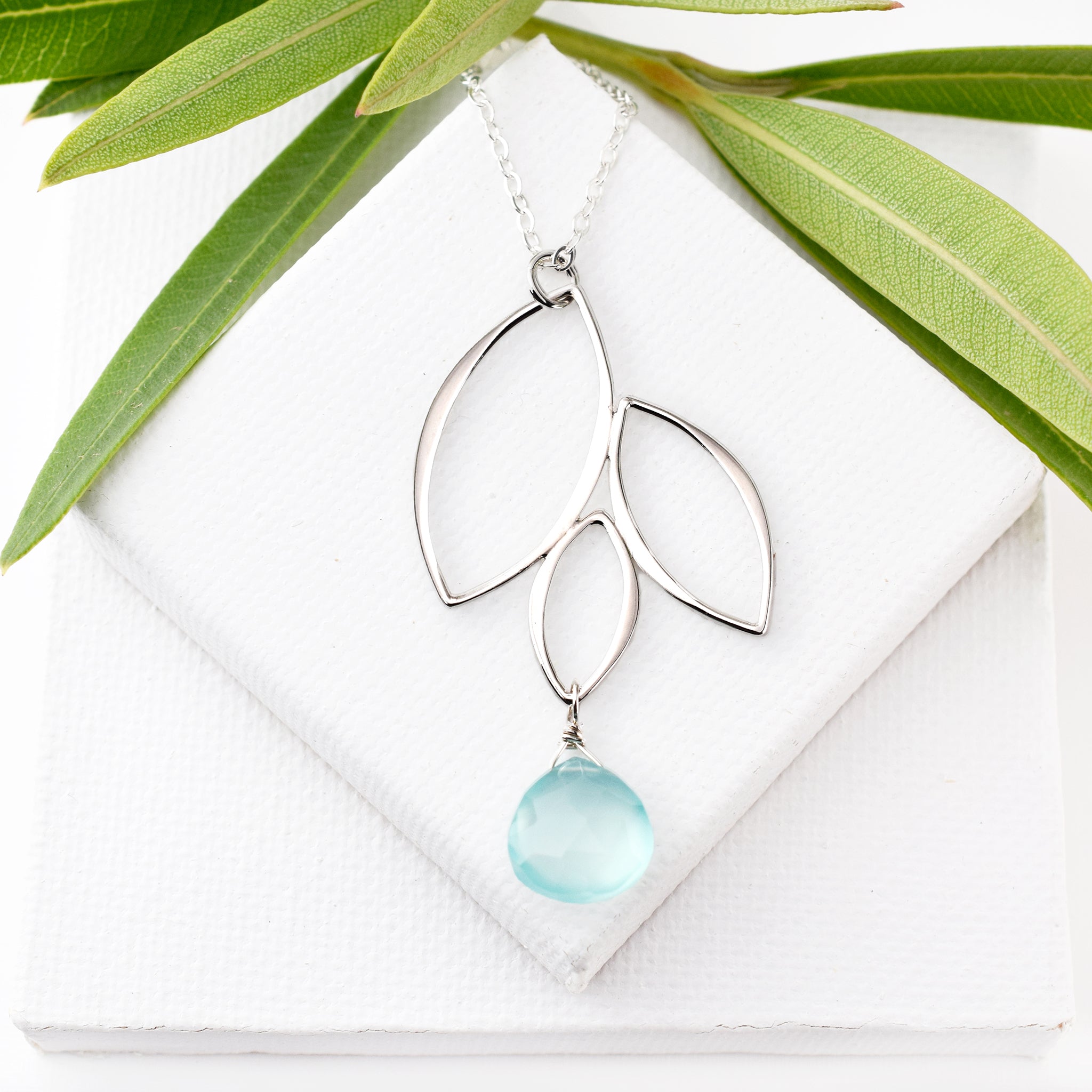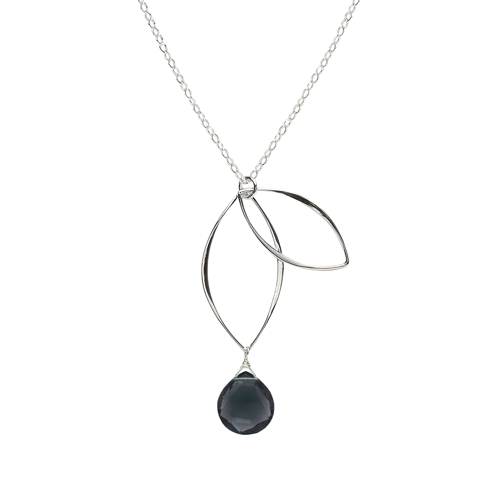 This handmade flower necklace features a faceted gemstone dangling from a sterling silver petal pendant.