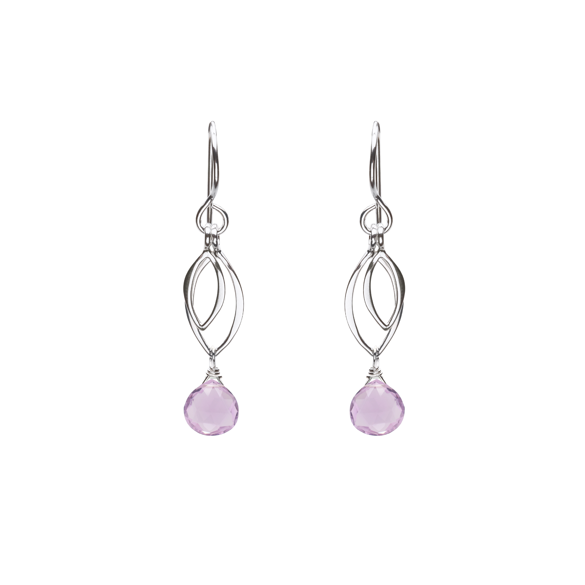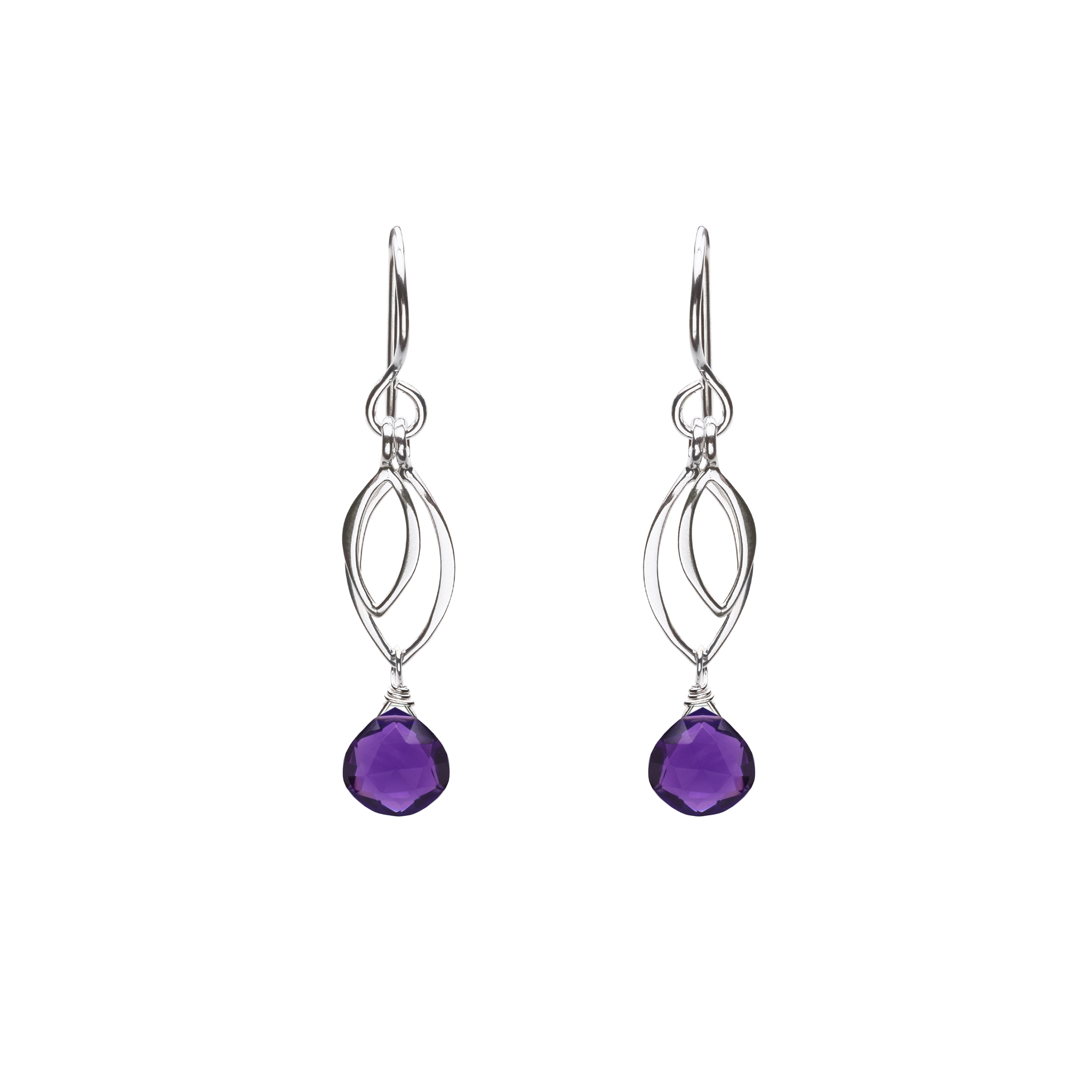 Like leaves moving in the wind, these individual sterling silver leaf earrings dangle freely. These handmade earrings feature two individually dangling sterling silver leaves, with faceted semi precious gemstones.