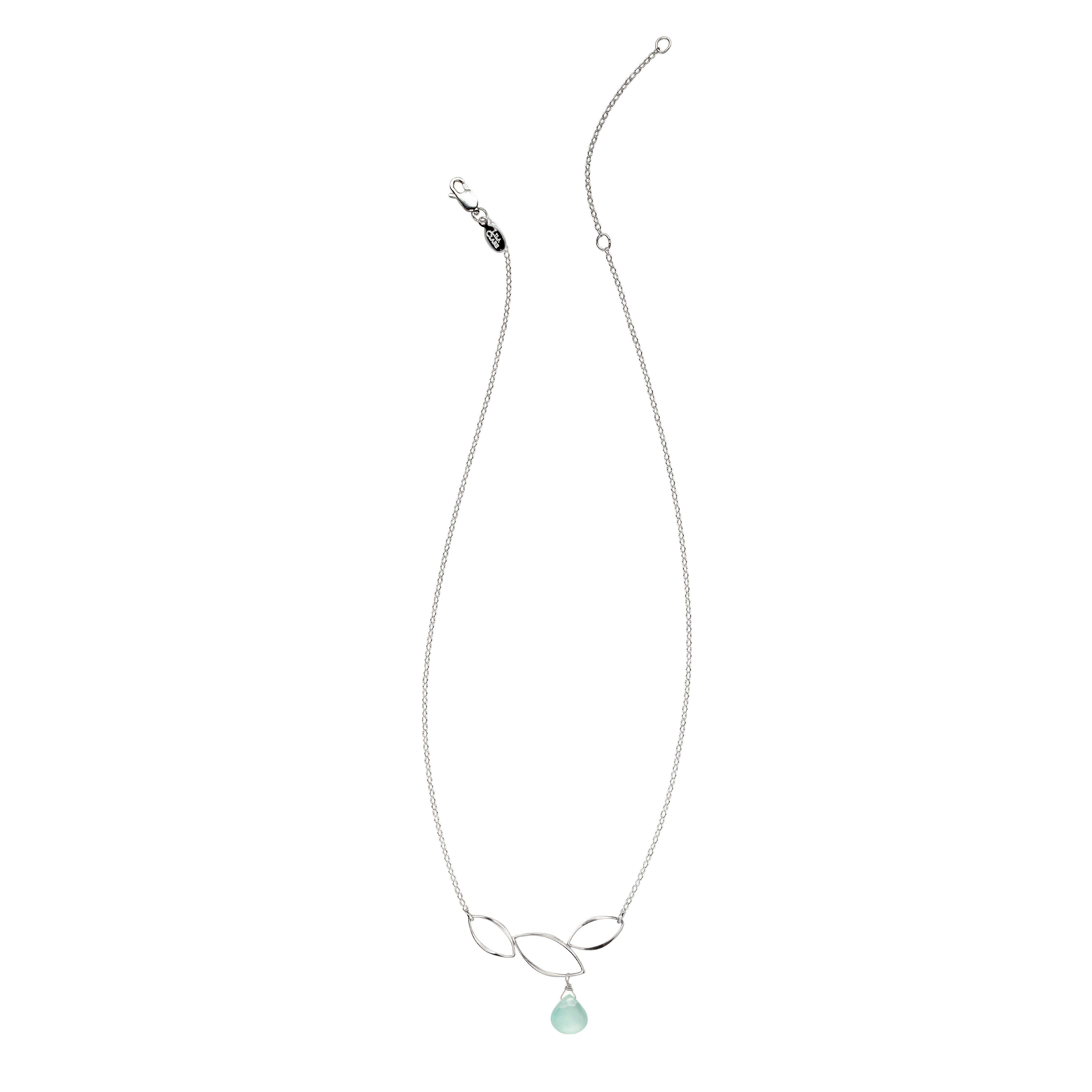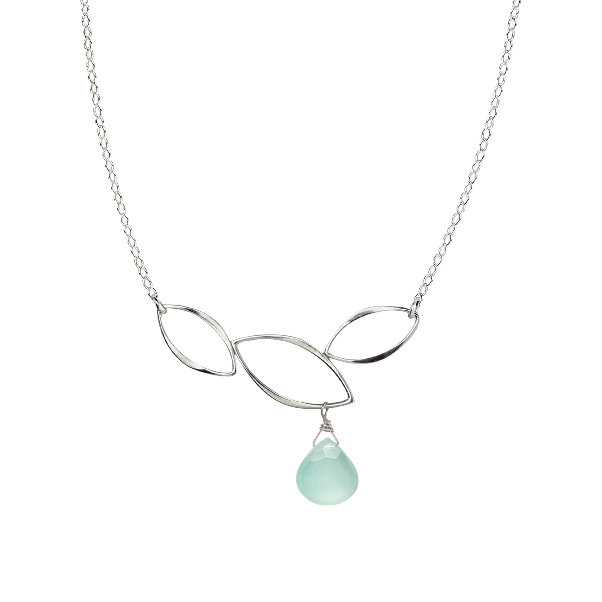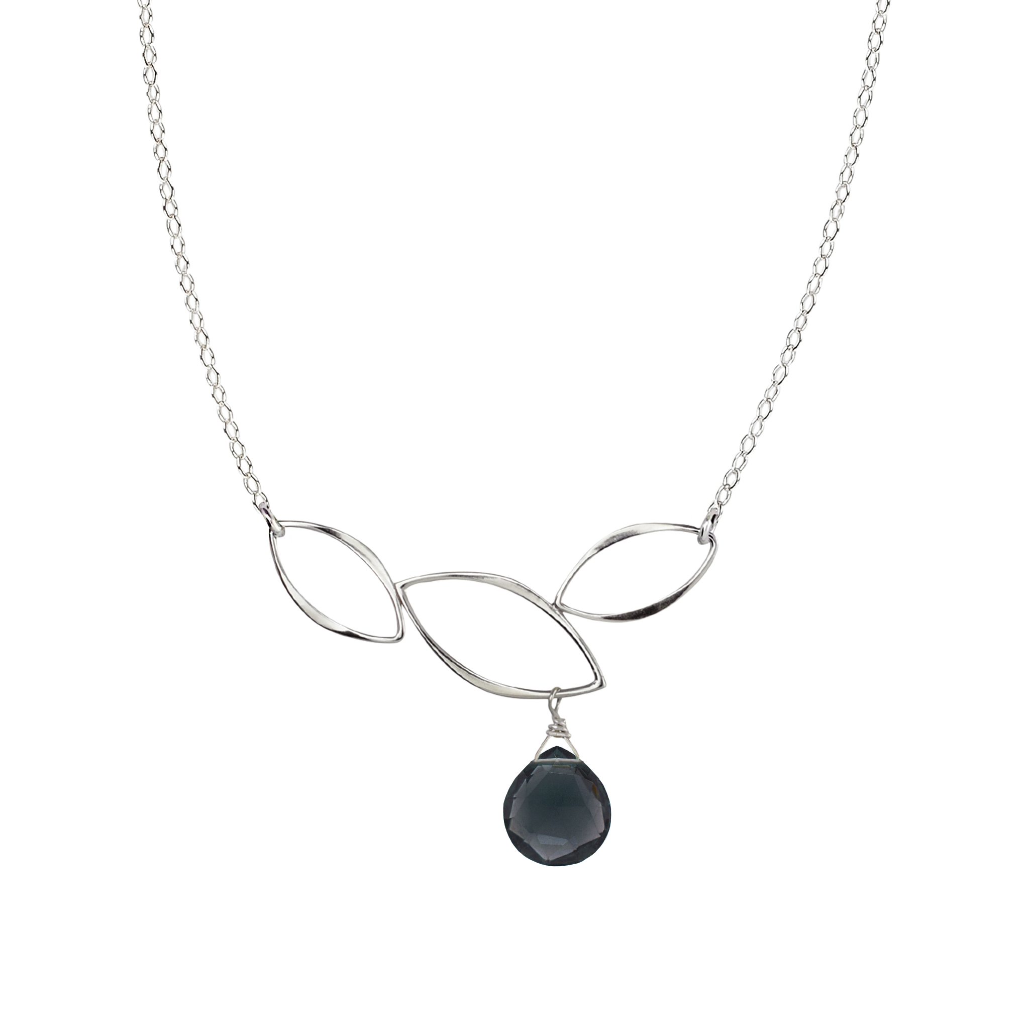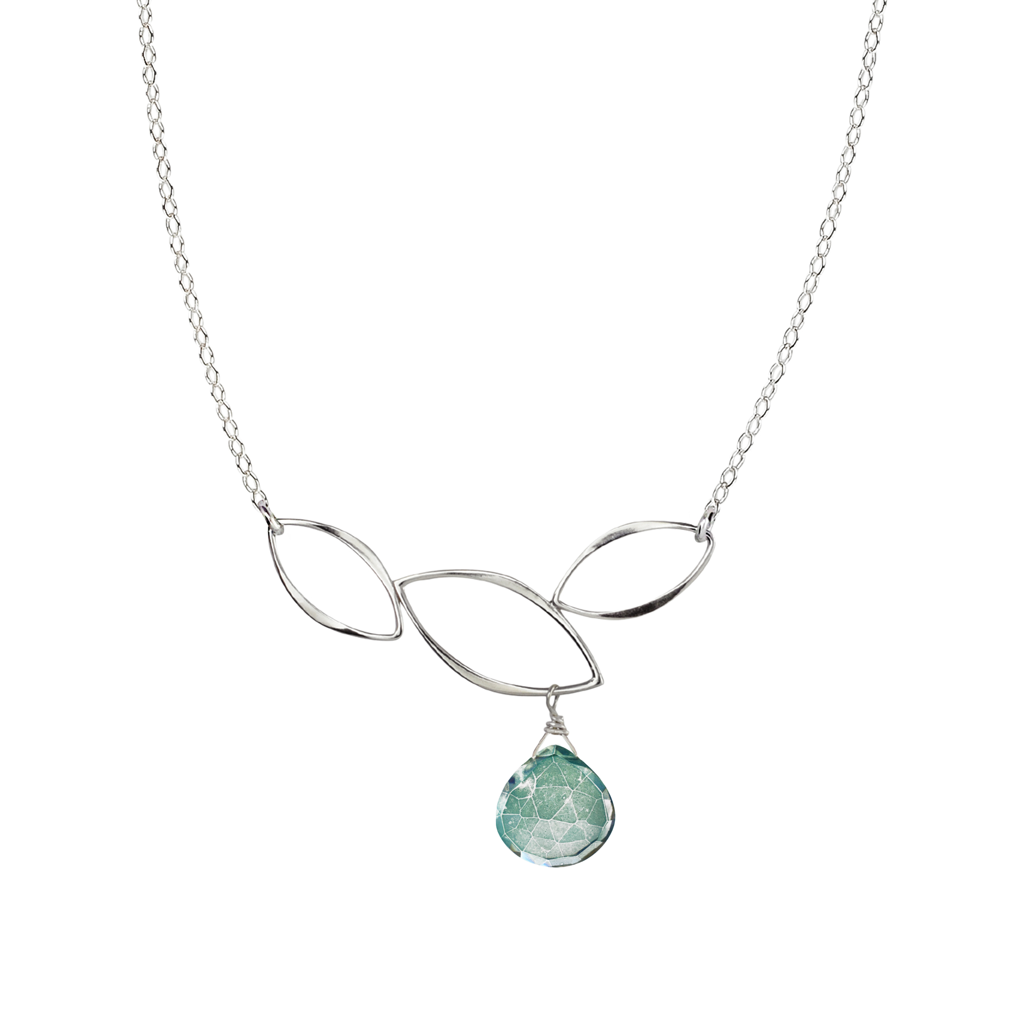 Ella Silver Three Leaf Curve Necklace with Gemstone