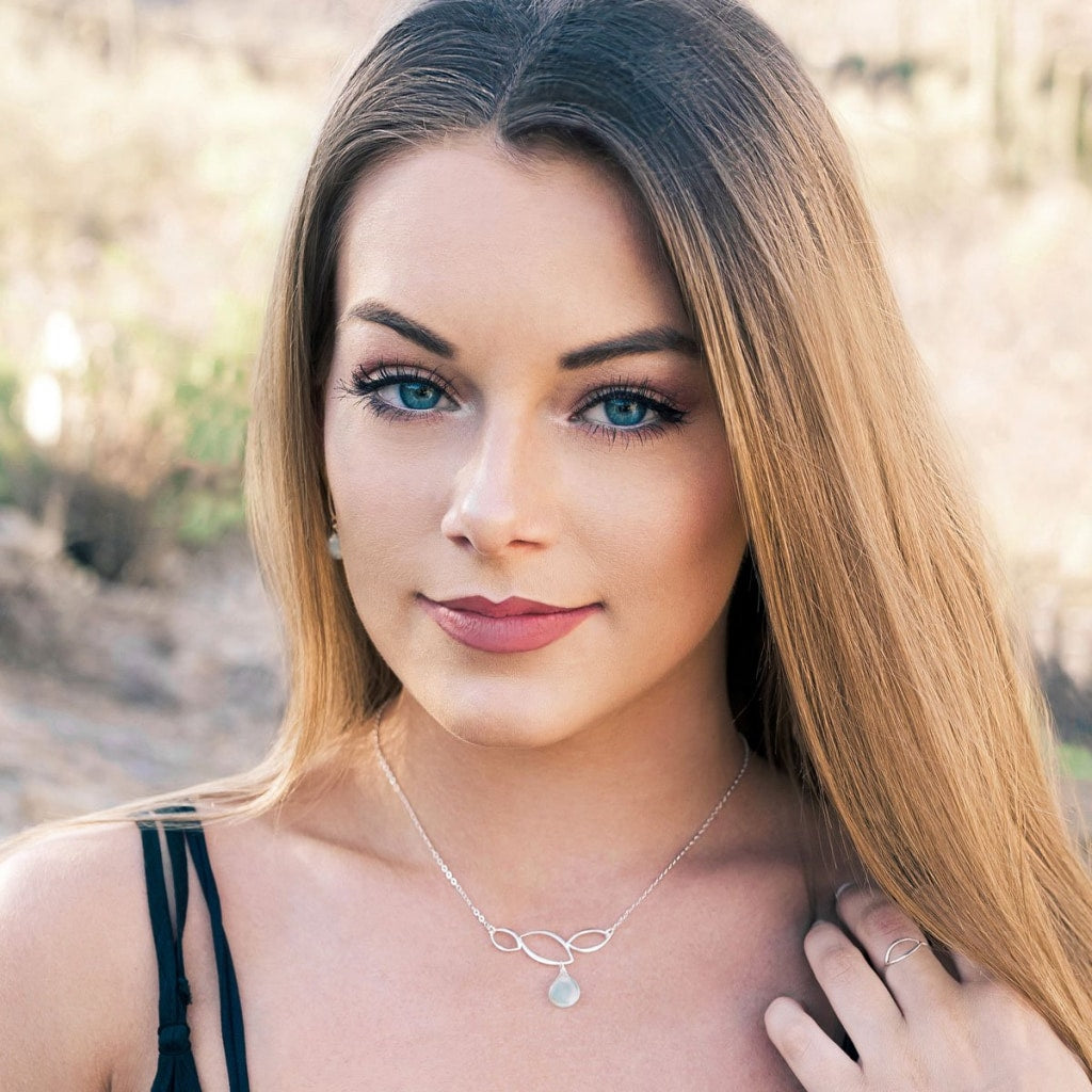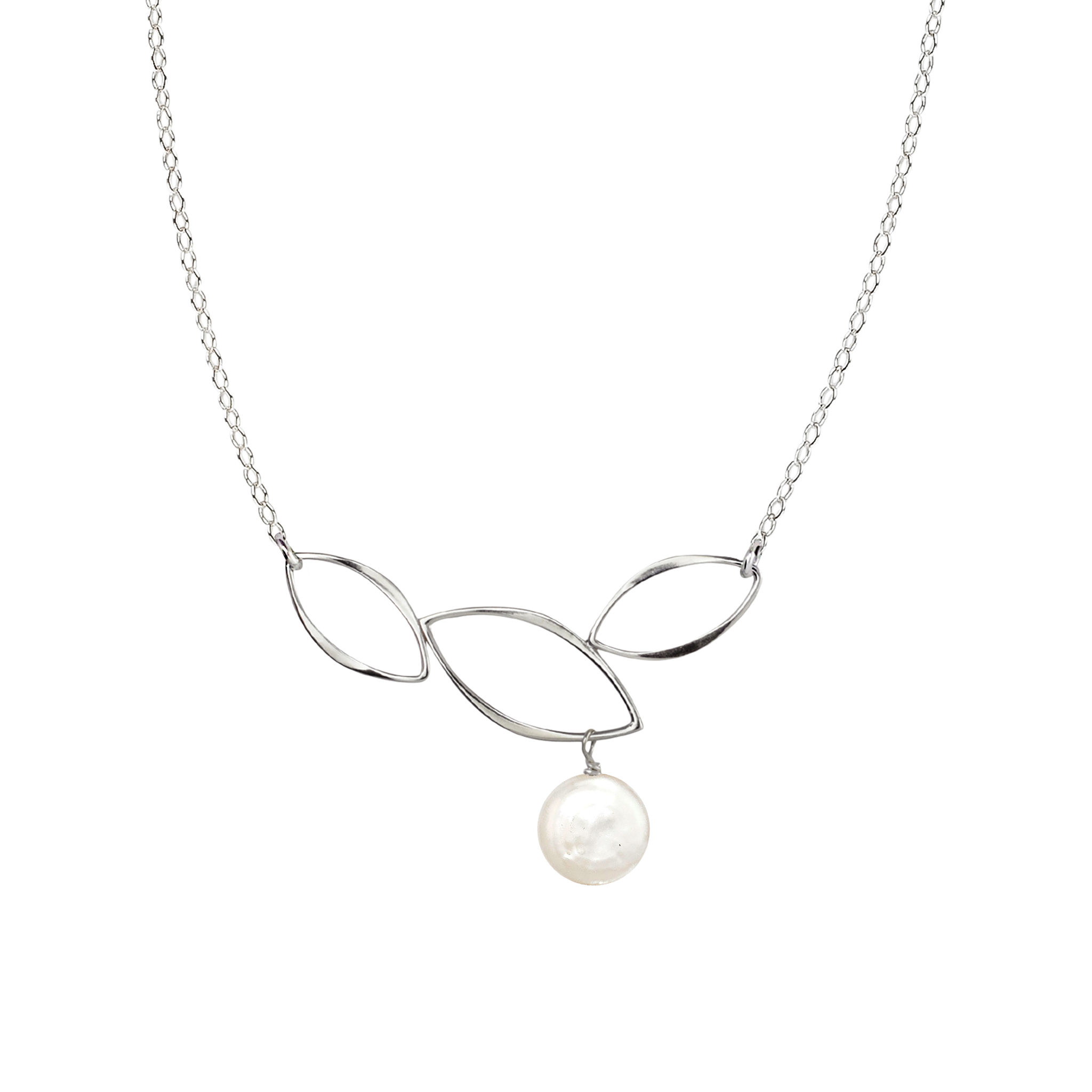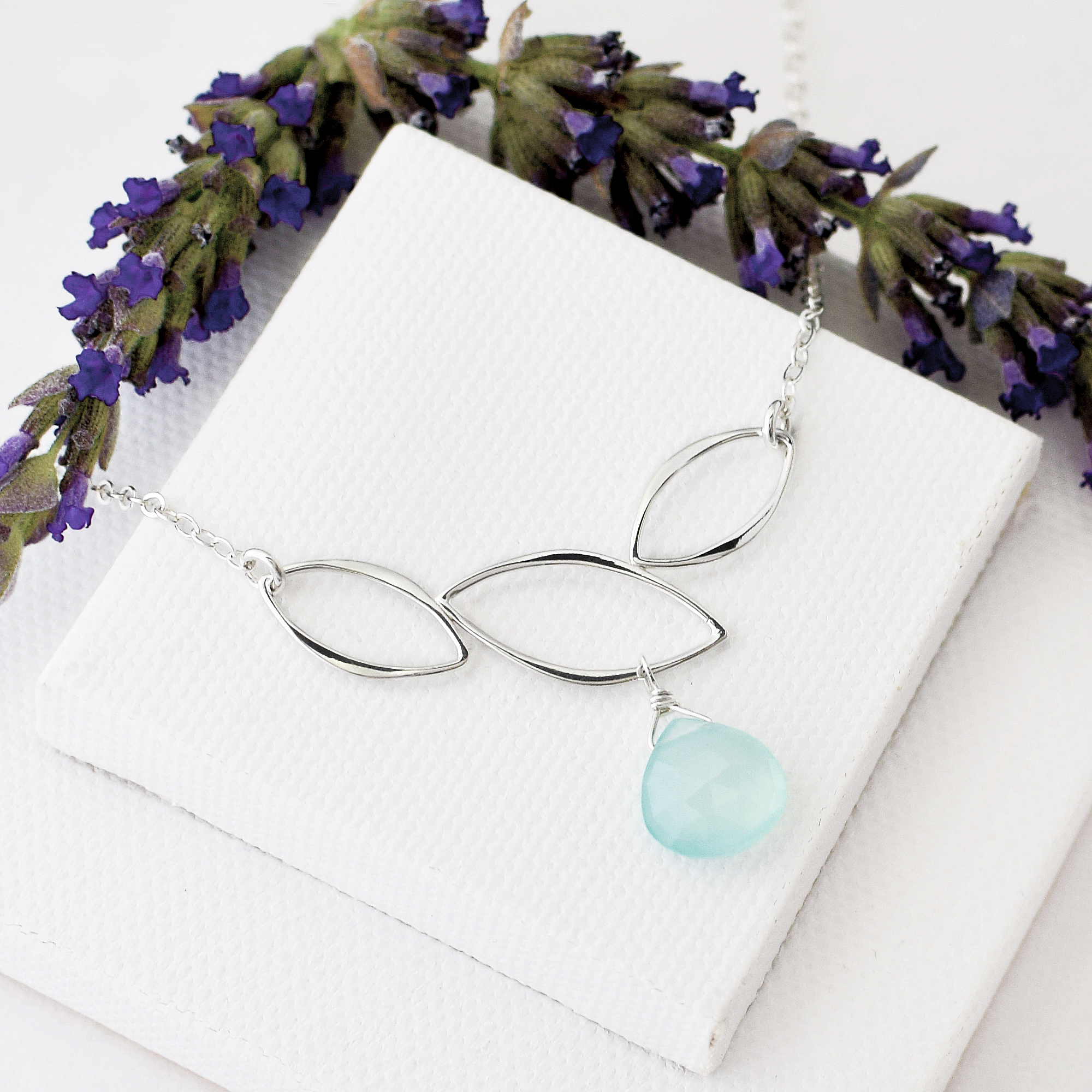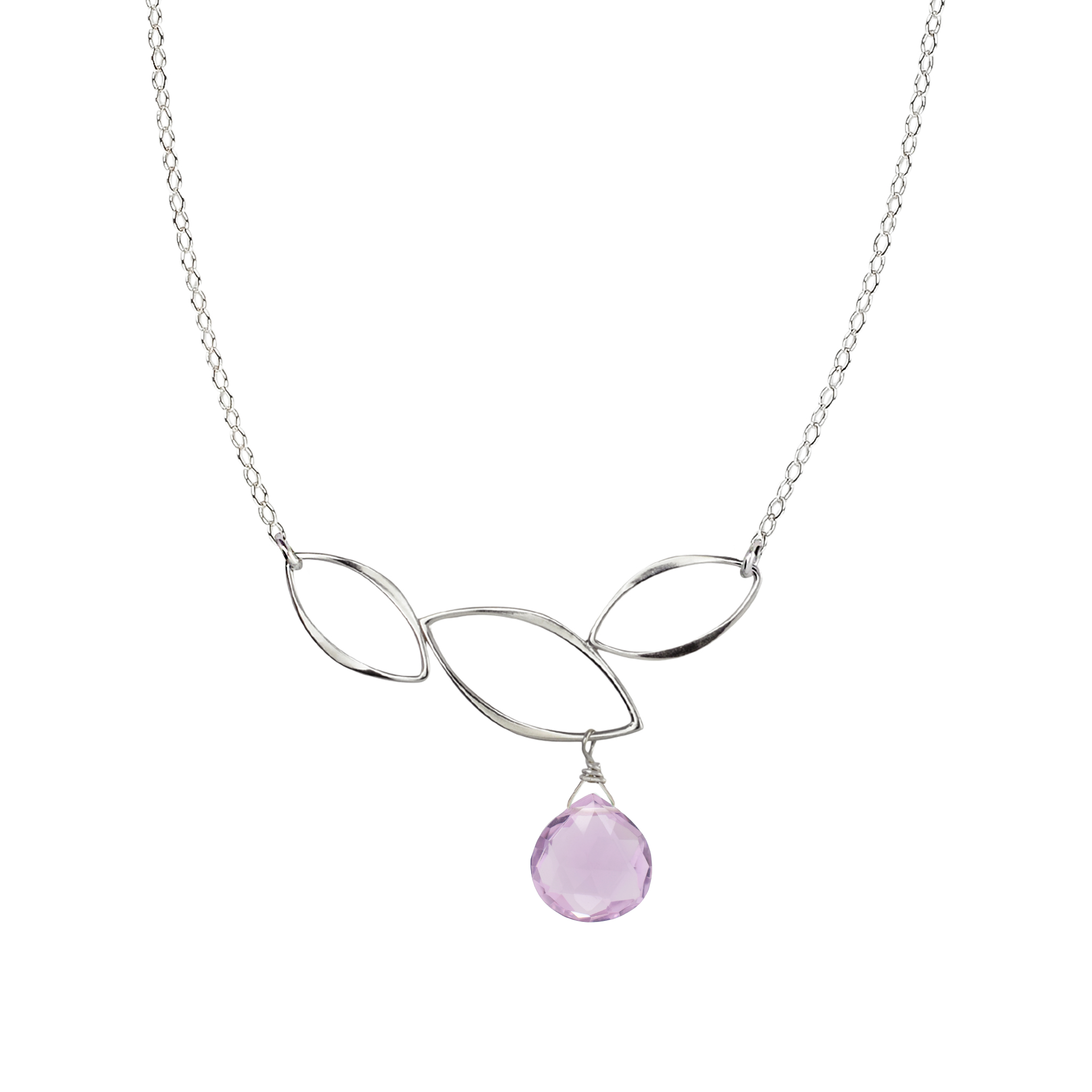 Ella Silver Three Leaf Curve Necklace with Gemstone
