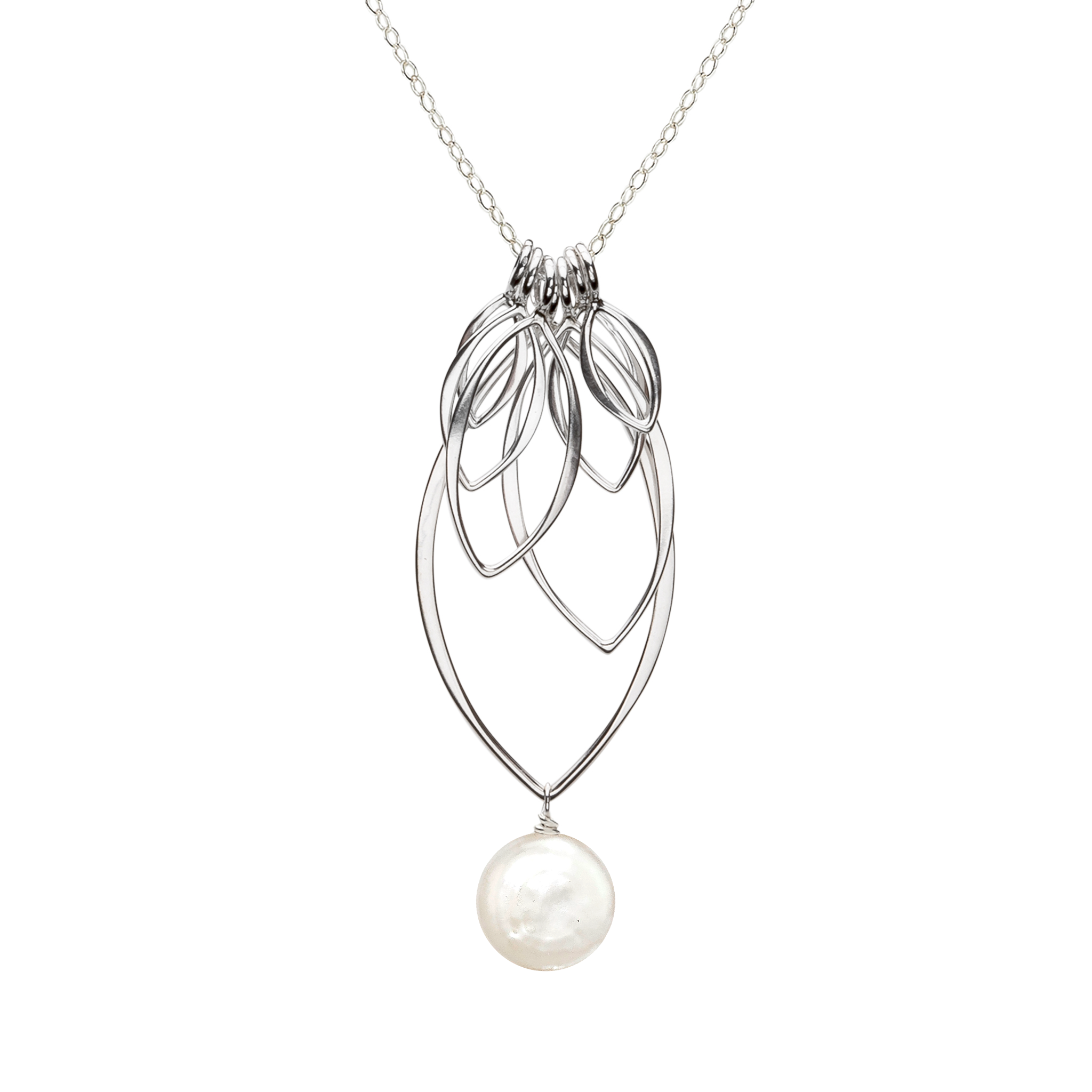 Like leaves moving in the wind, the individually strung sterling silver leaves on this large leaf fringe necklace dangle freely.
