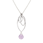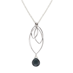 Like leaves moving in the wind, the individually strung sterling silver leaves on this necklace have easy, graceful movement. This handmade necklace features three dangling leaves, one with a faceted gemstone.