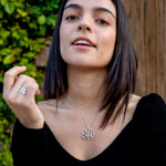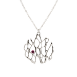 Silver Medium Organic Circle Cactus Necklace with Gemstone