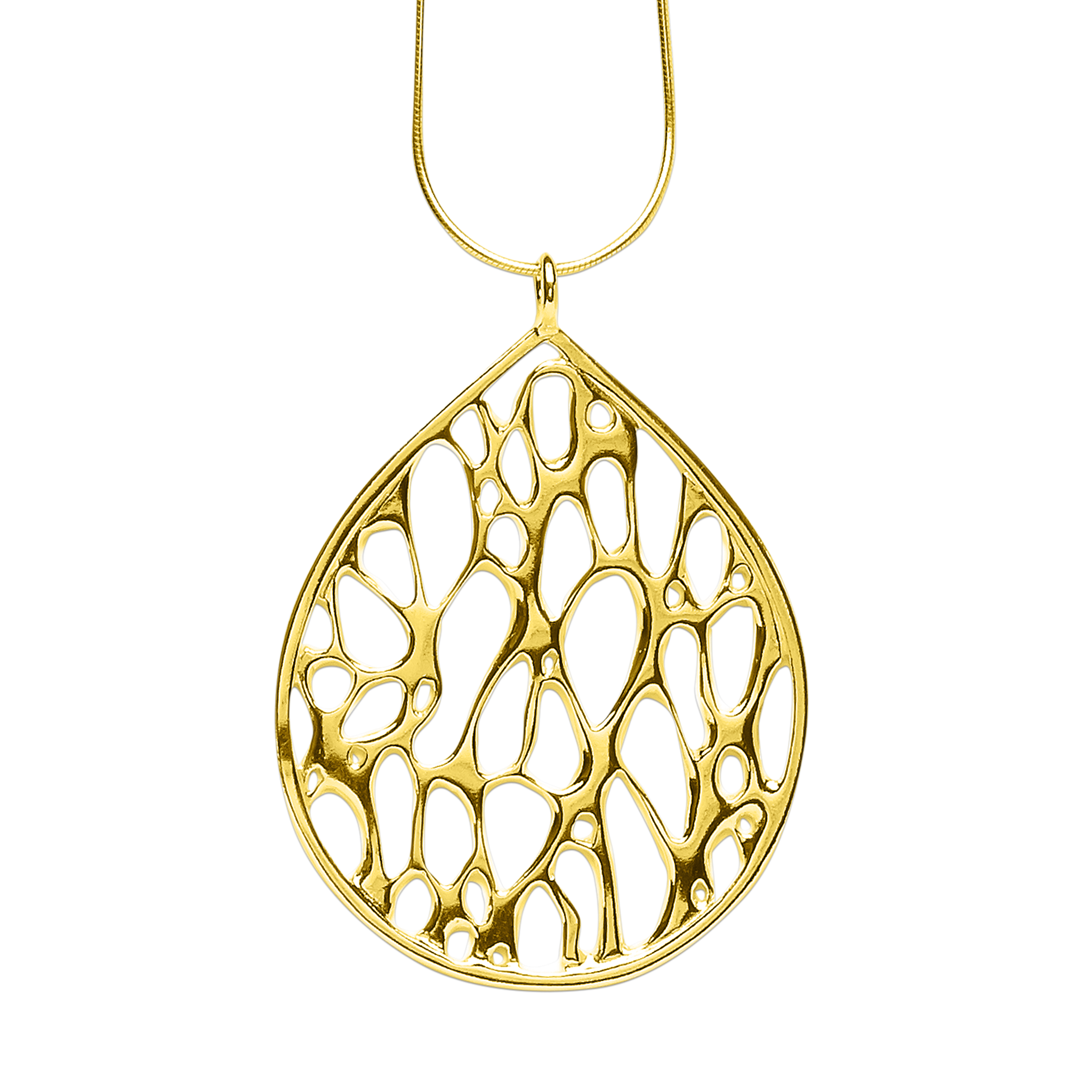 This handmade teardrop cactus pendant is made from actual Prickly Pear cactus skeletons (skeleton closeup shown). Using the lost wax casting process, each piece starts with a carefully selected section of Prickly Pear cactus skeleton.